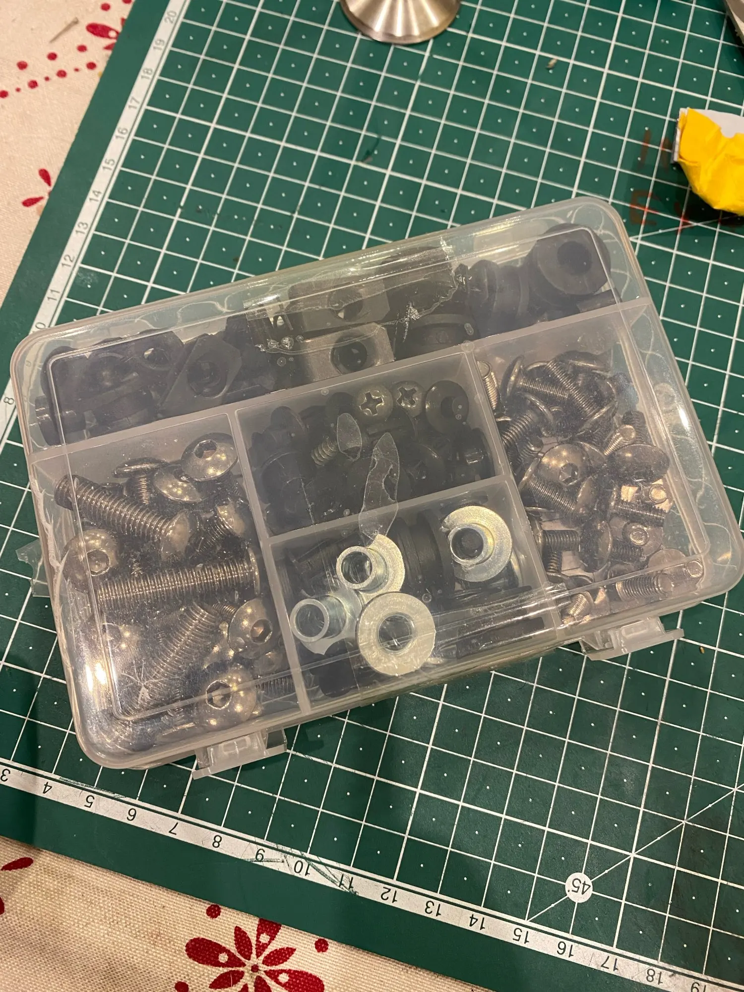 Коробка прибыла сломанной, и все винты и гайки застряли в конверте, я не знаю, есть ли все или что-то отсутствует