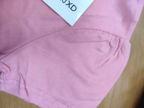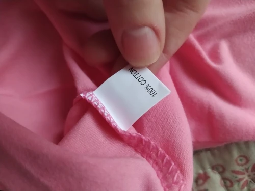 Отличная футболочка, нарядная и милая. После стирки все хорошо, ничего не изменилось. На ощупь приятный хлопок. Размер больше, чем я ожидала. Нитки не торчат, все швы очень аккуратные. Только ленточки никак не обработаны по краям, боюсь истреплются очень быстро. Посторонних запахов нет.