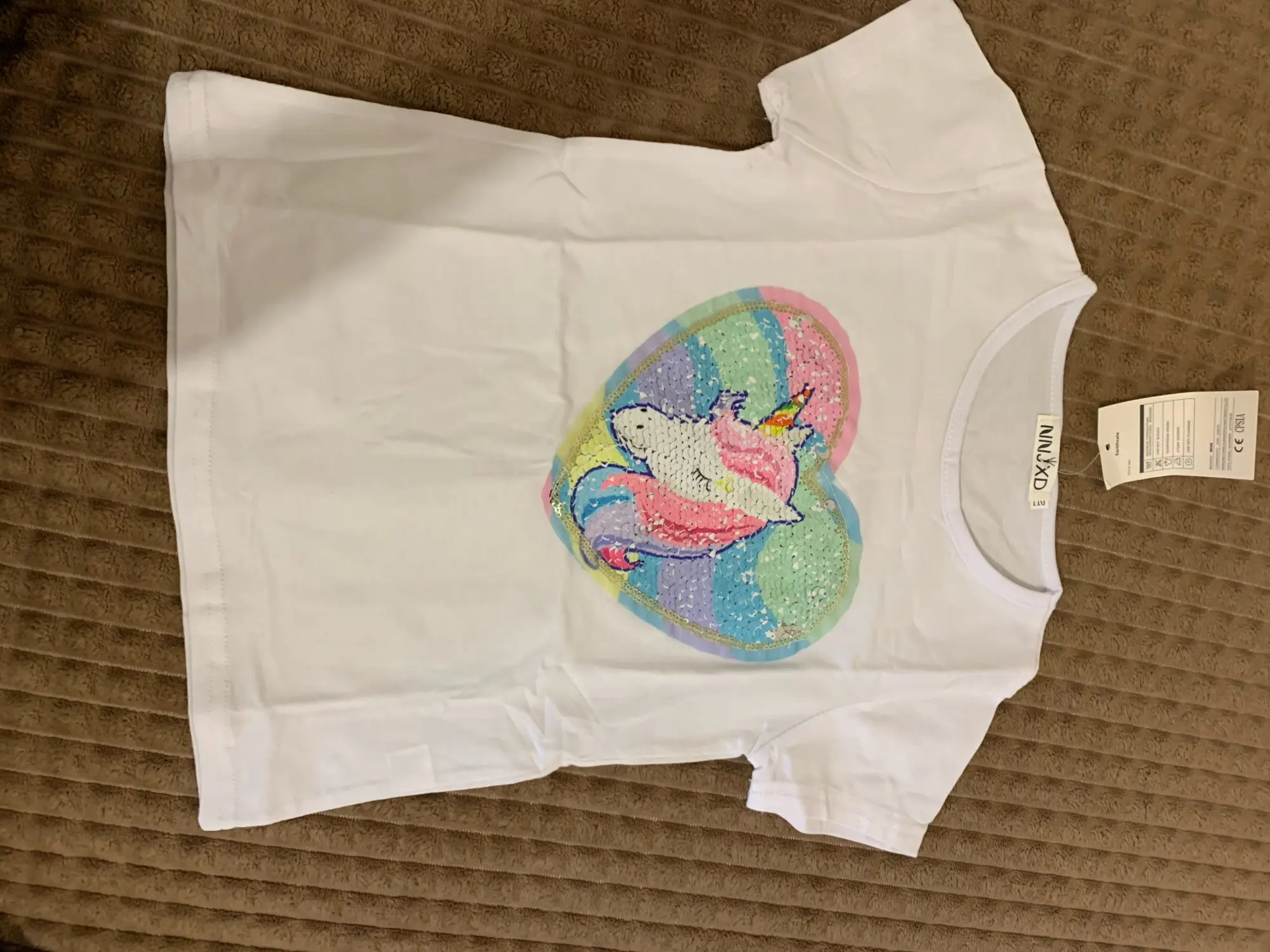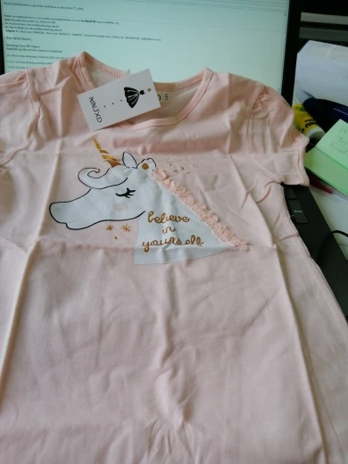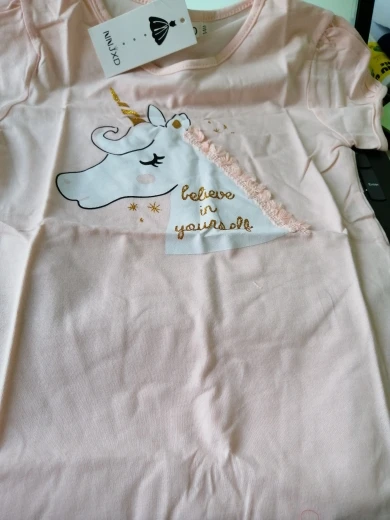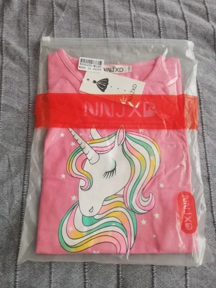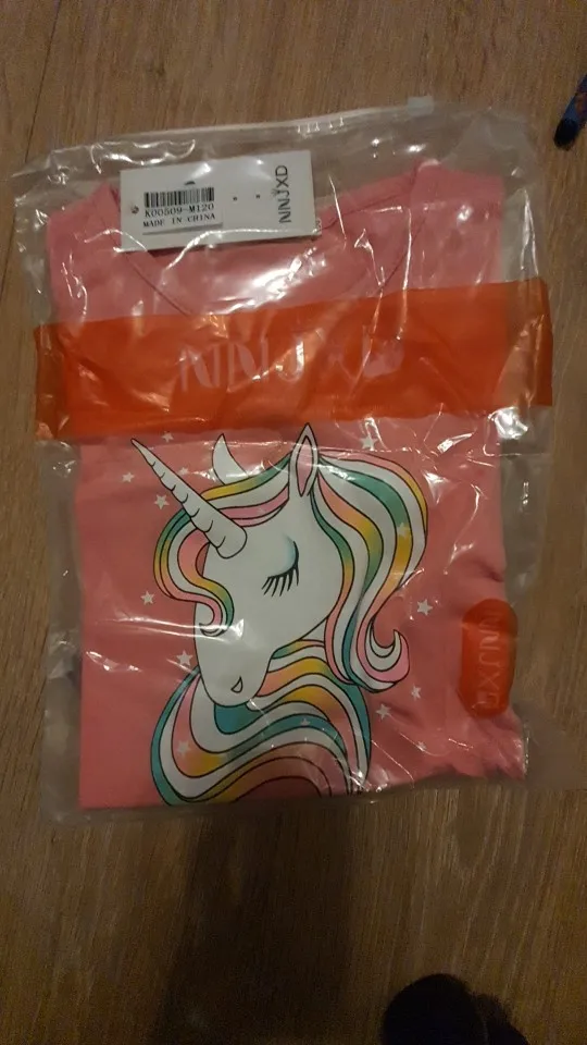 заказала 11.11, получила 09.12 в Пермский край, получила бы раньше, если бы не наша почта. Качество вроде нормальное, единорог и всё остальное наклейка, посмотрим как после стирки будет. Брала на дочь 7 лет, 140 см на этикетке, нам как раз