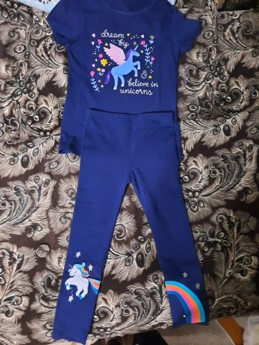 Пришла посылка дней за 11 в Москву. Верхняя упаковка так себе пакетик обычный чёрный. Внутри каждая вещь упакована в свой пакетик. По размеру футболку заказыва на 5 лет на девочку возраст 4г.10 мес вес 23 кг мы ростом 114 см не толстая не худая среднего телосложения должны быть как раз возможно чуть запас будет. Соответствуют фото.