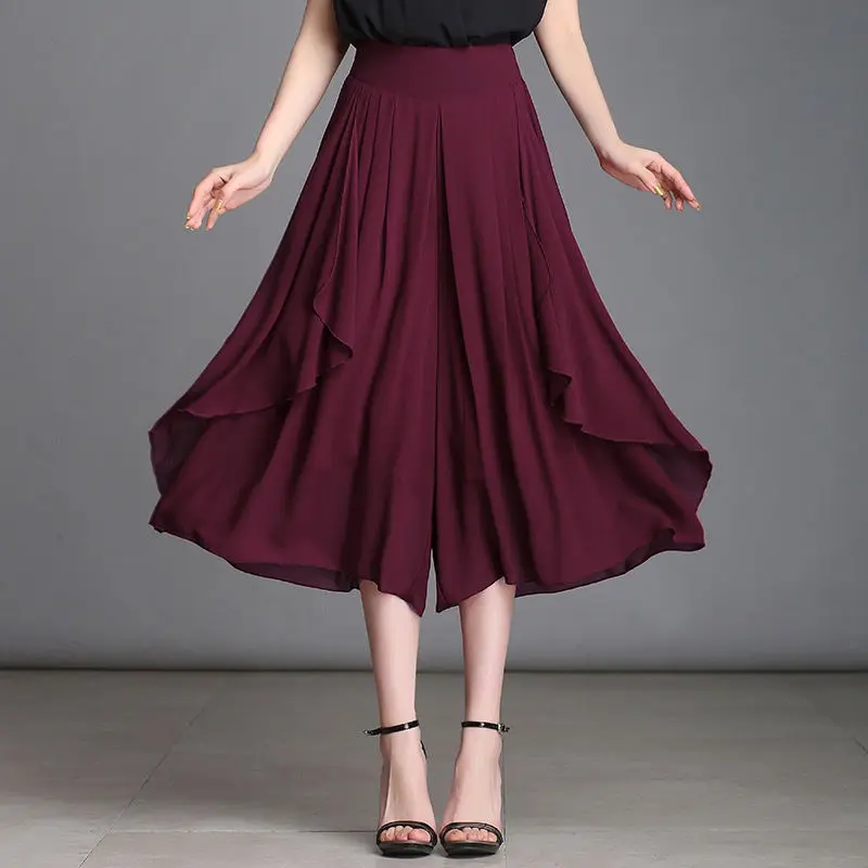 Женские шифоновые шорты с широкими штанинами и оборками 6XL, повседневные свободные шорты с высокой эластичной талией на лето