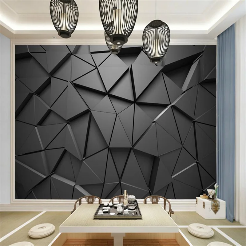 Пользовательские Современные Геометрические обои 3D черный треугольник настенная бумага s Офис Гостиная 3D стереоскопическая настенная бумага s домашний декор