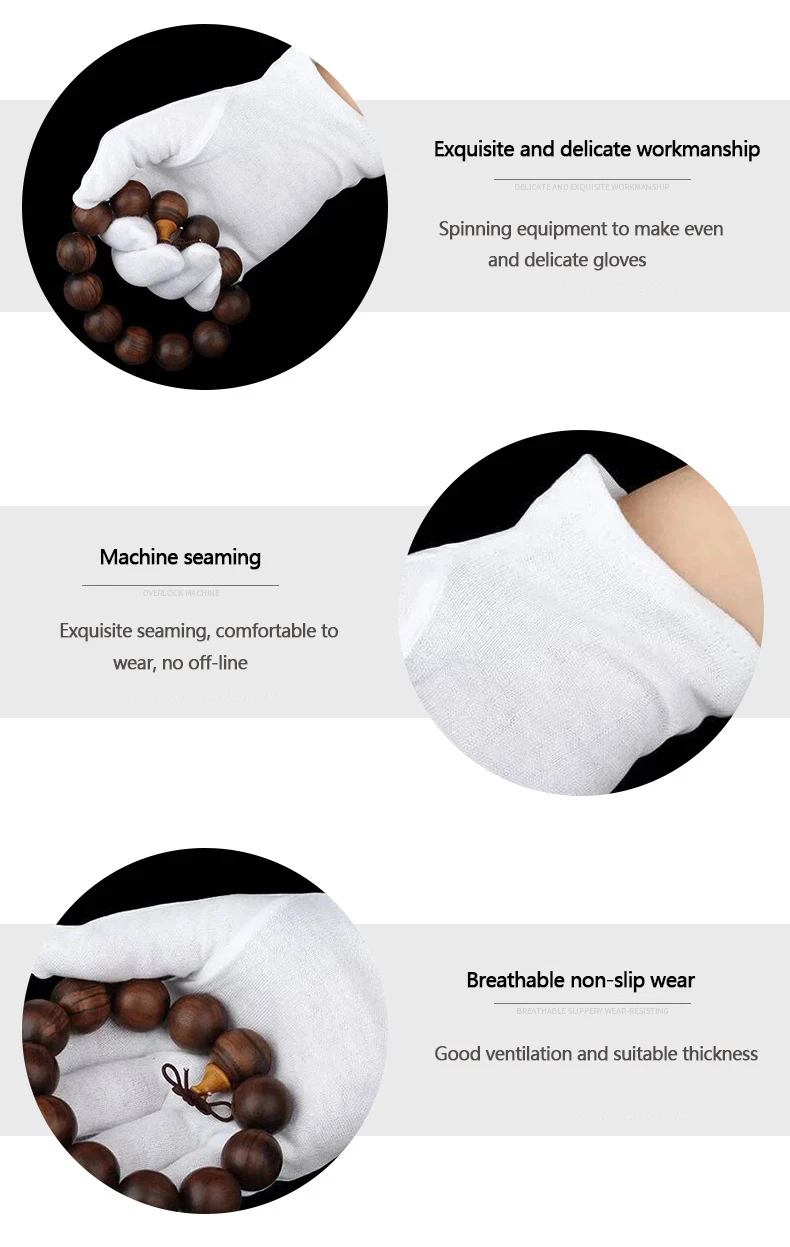Белые хлопковые перчатки легко снимаются и легко снимаются или снимаются при ношении. Большой палец пришит отдельно для лучшей удобной посадки, не оторвется легко. Удобный для ручной спа, косметический, увлажняющий и используется для фотографирования, хранения, художественной обработки и ювелирной проверки серебряных монет. Особенности продукта:Цвет: белыйМатериал: хлопок и полиэстер Примечания:При стирке не кладите в сушилку. Высыхает, в противном случае они усадятся. Посылка включает в себя:12 пар белых хлопковых перчаток