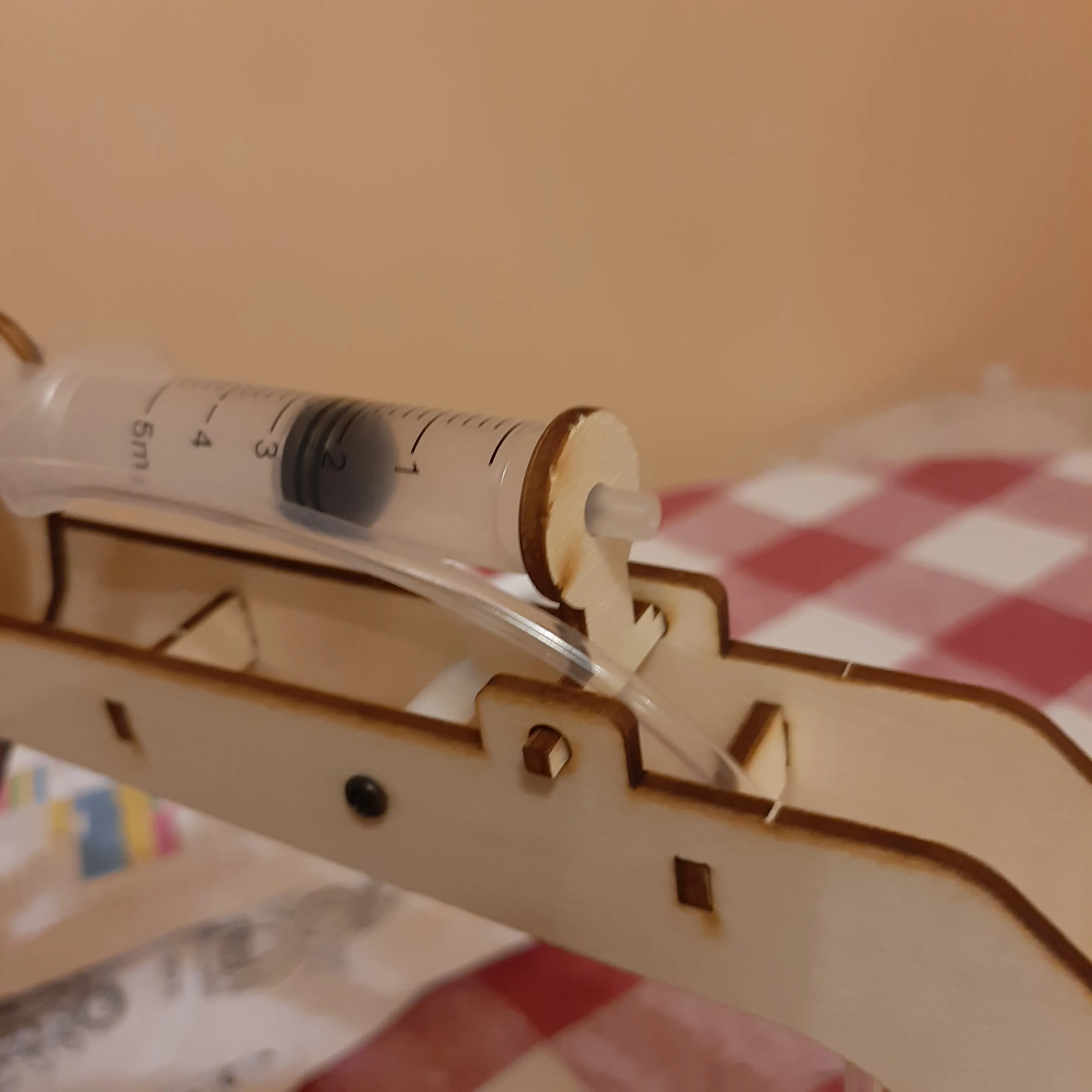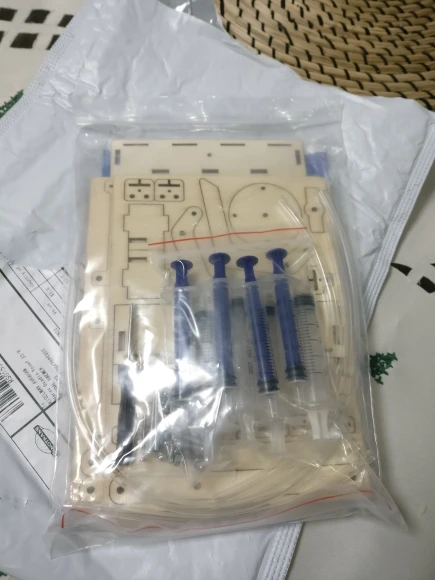 сложно надеть трубочки. шприцы наверняка с давно истекшим сроком хранения- поршни плохо герметизированы. когда совсем будет плохо работать- заменить на новые из аптеки. сама игрушка неплоха, даёт понять принципы работы гидравлических систем