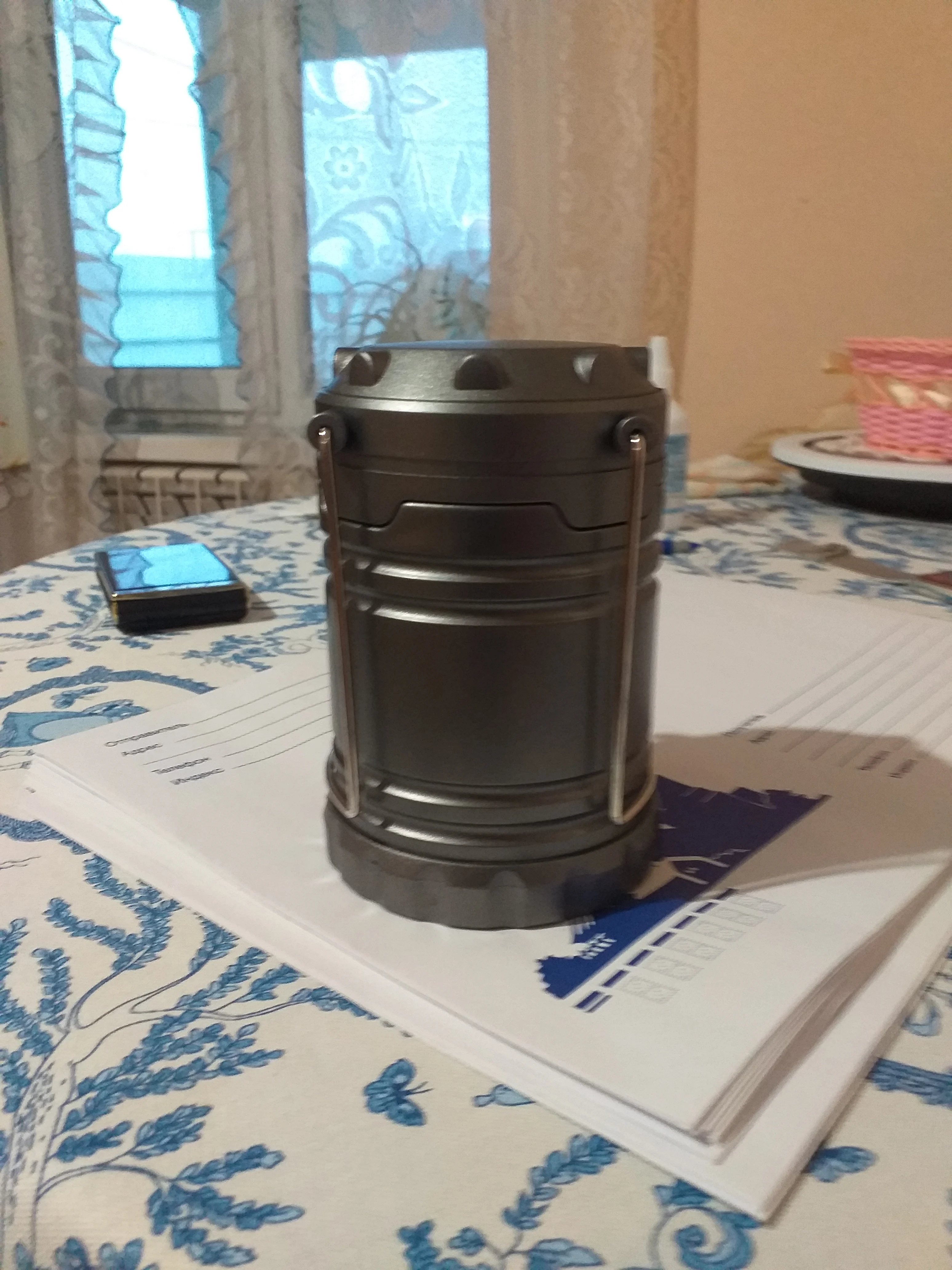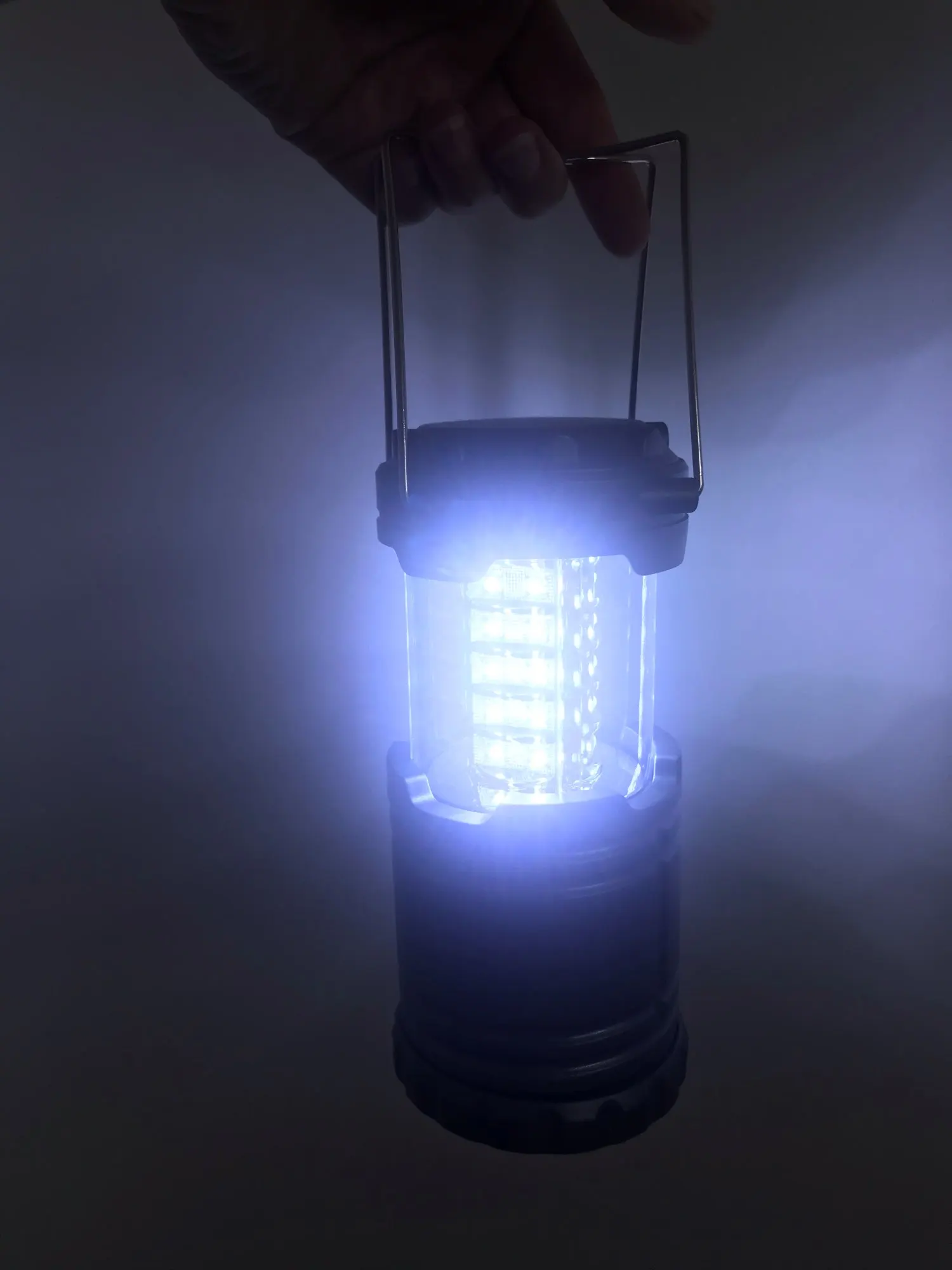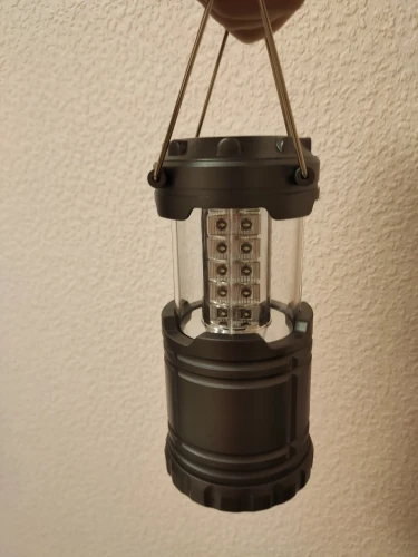 Нормальный светильник для палатки-кемпинга. Светит не очень ярко (сравниваю с китайским же фонариком поменьше, работающим от 3 ААА батареек) и свет не дорогим белым светом, а слегка отдаёт в дешёвую синеву.