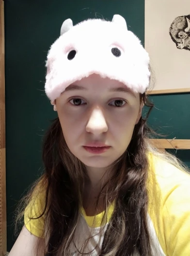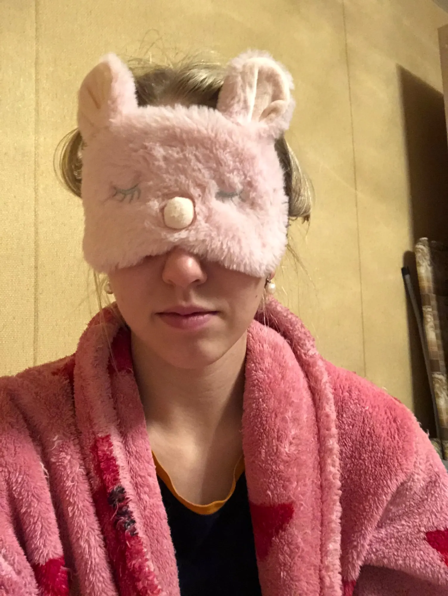 Маска милая и очень приятная наощупь.от света спасает сомнительно) Но в качестве аксессуара прикольно и мило)