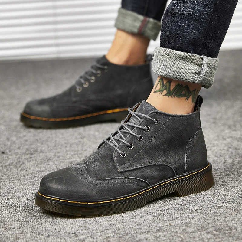 Мужские ботинки из натуральной кожи; сезон осень-зима; ботильоны; Мужская винтажная обувь высокого качества на меху; стиль без меха; размеры 38-44
