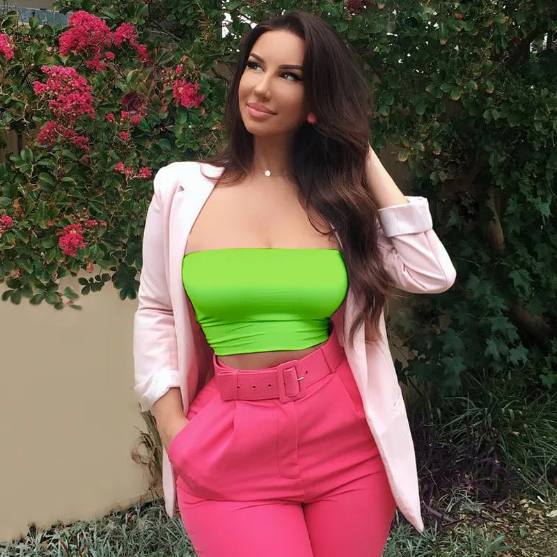 Топ Ahagaga женский эластичный, модная уличная одежда, неоновый зеленый оранжевый Топ без бретелек, для клувечерние, для девушек, лето 2020