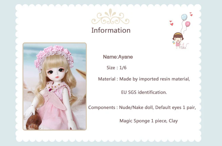 16 хлопок Ayane крем BJD SD YOSD кукла для девочек День рождения Рождество Лучшие подарки LCC