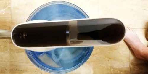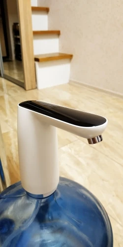 Не так быстро качает, как ручной насос, но зато без усилий, останавливается сразу при нажатии. Очень понравилось, что есть лимит: примерно полтора литра, а то я думала, что вдруг сверху что упадет на сенсорный включатель-выключатель и будет трындец литрам двадцати воды и полам).