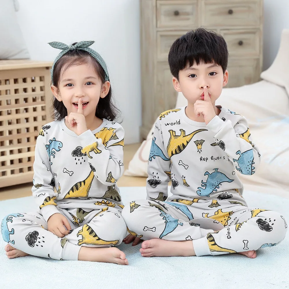 Пижамы для мальчиков и девочек с мультяшным динозавром, пижамы из х...