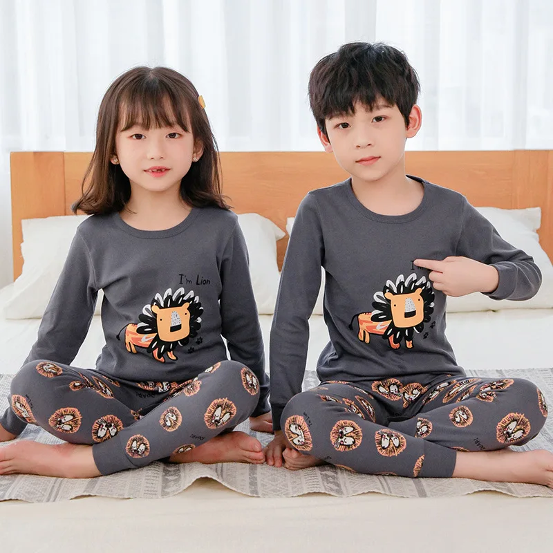 Пижамный комплект для мальчиков и девочек, хлопковый, на осеньзиму,...