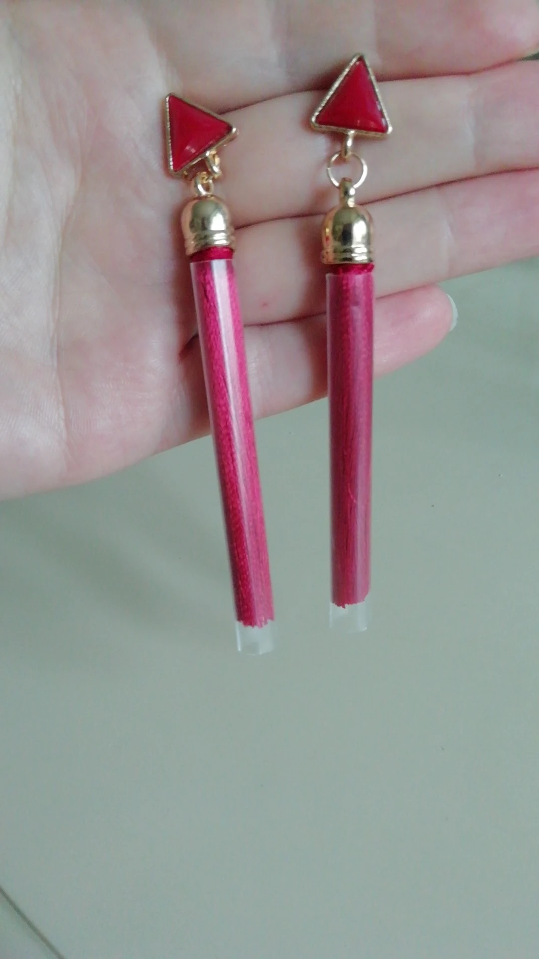 Яркие цвета, хорошо упакованы, быстрая доставка. Набор для чистки был добавлен в подарок. Эти серьги немного длиннее, чем с треугольным зажимом.