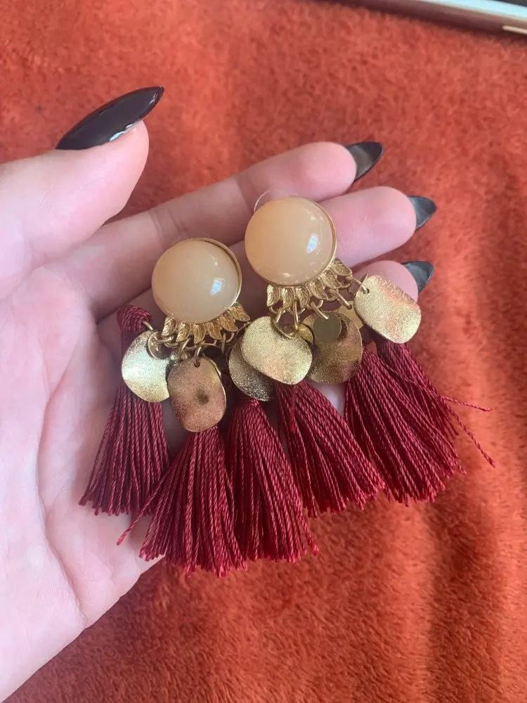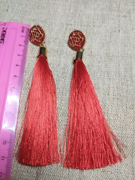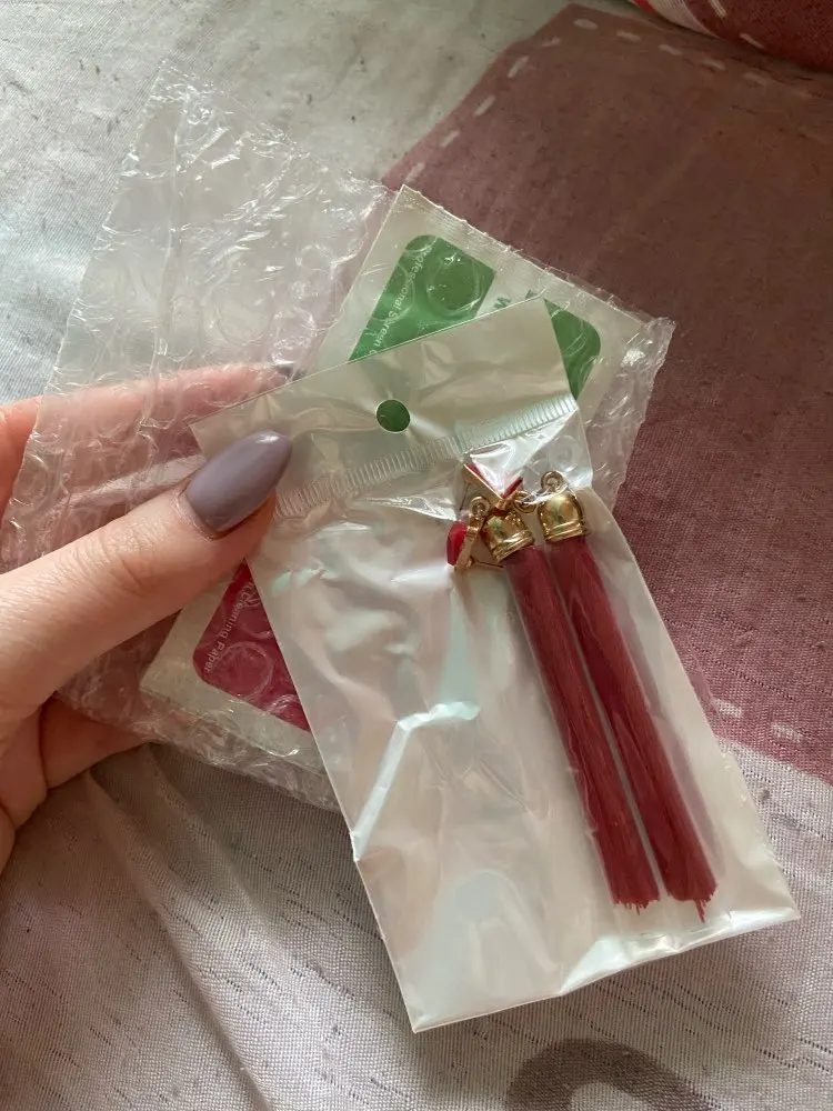 Заказ пришёл быстро, около месяца, серьги красивые, в меру длинные. Не мятые, ниточки пришли в отдельных пластиковых трубка, чтобы не помялись. Гвоздик с силиконовой заглушкой. Уши от них не болят не тяжёлые. Все ровное и целое.