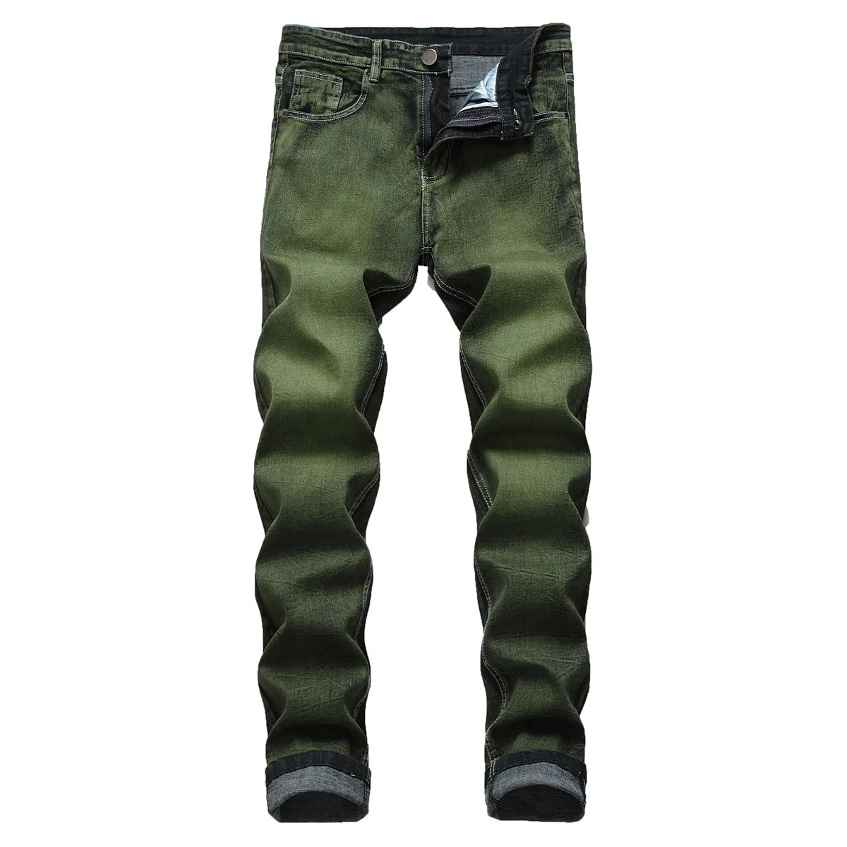Мужские джинсы, темно-зеленые, эластичные, прямые, зауженные, с высокой эластичностью, большие размеры, облегающие мужские джинсы