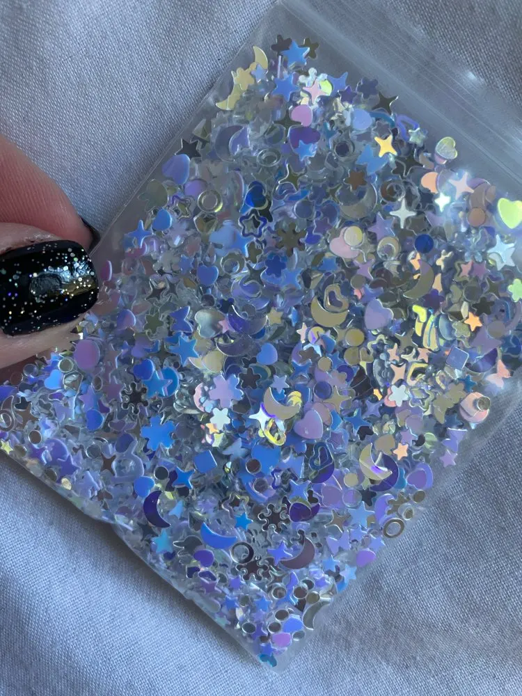 Ультратонкие лазерные блестки художественное оформление ногтей для ногтей, около 10 г, Микс, в форме сердца, звезды, ракушки, цветов, разные размеры