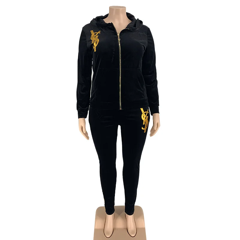 Весенние женские комплекты HAOOHU 2021, модные трендовые повседневные Высококачественные мягкие костюмы из 2-х предметов с золотой бархатной вышивкой