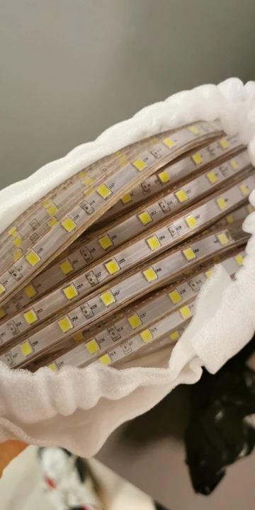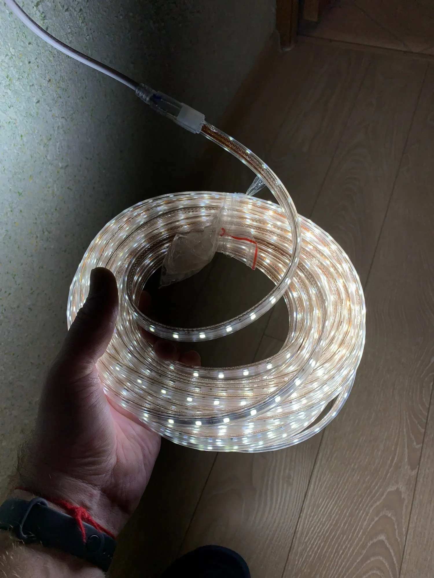 Заказ получил, качество нормальное, свет довольно яркий, лента полностью литая, подойдет для улицы. Единственный недочет это короткий шнур к розетке, где-то 30 см.