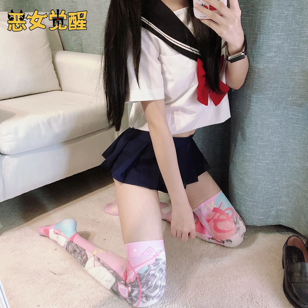 Женские чулки выше колена из полиэстера, тонкие забавные мультяшные длинные чулки для девочек с 3D принтом, японские кавайные высокие рождественские чулки