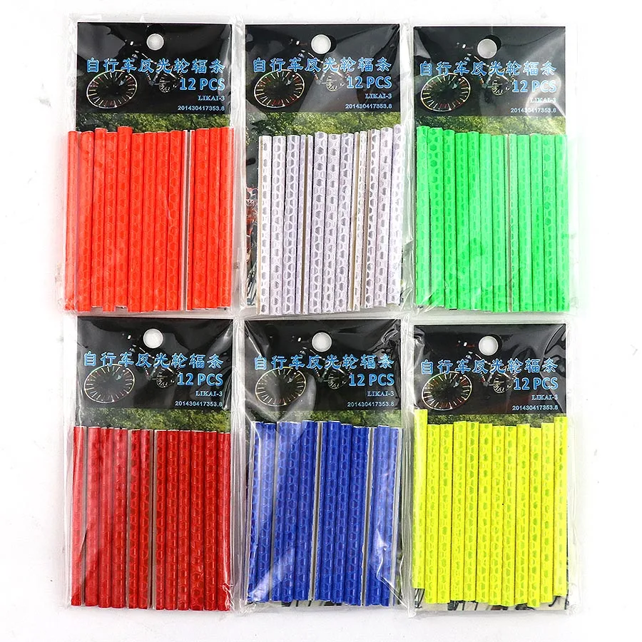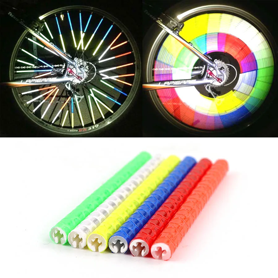 12 шт. велосипедные шлемы для езды на горном велосипеде, обода колеса говорил Крепление зажим трубка Предупреждение светильник полосы Отражатель Светоотражающие Открытый 75 мм