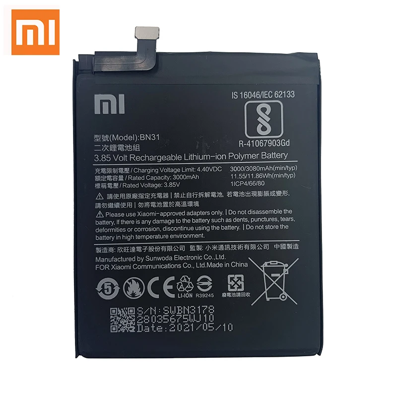 Оригинальный сменный аккумулятор Xiao mi BN31 для Xiaomi Mi 5X, Mi5...