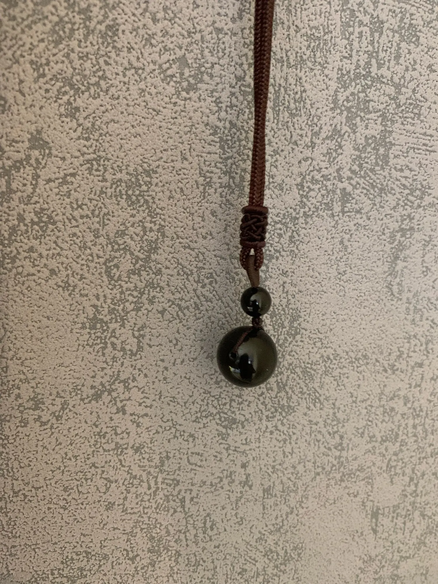 Pendant arrived today. As expected via the comments, there's no iridescent shine to the stone. It's just plain black. It does not feel plastic, so I do think it is indeed real obsidian. So I'm deducting 1 star. It's still a very nice pendant and the rope is very nice as well. I'm sure I'll find a good use for it, so it's not such a big deal. It was shipped very promptly and arrived quickly. Thank you very much! <3