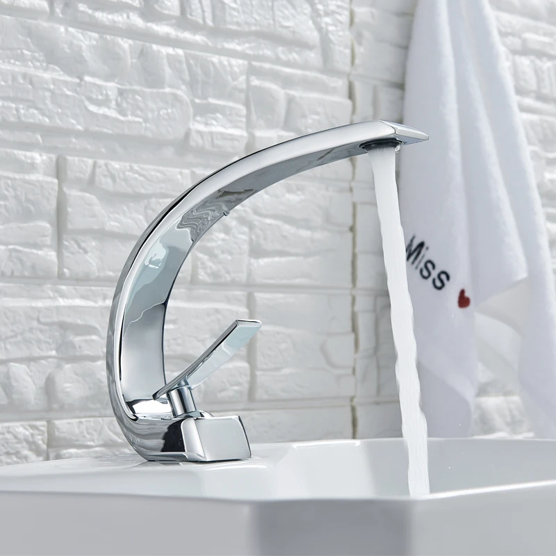 Хромированный смеситель для раковины в ванную комнату, кран с одной ручкой и одним носиком C, крепление в форме раковины, для горячей и холодной воды