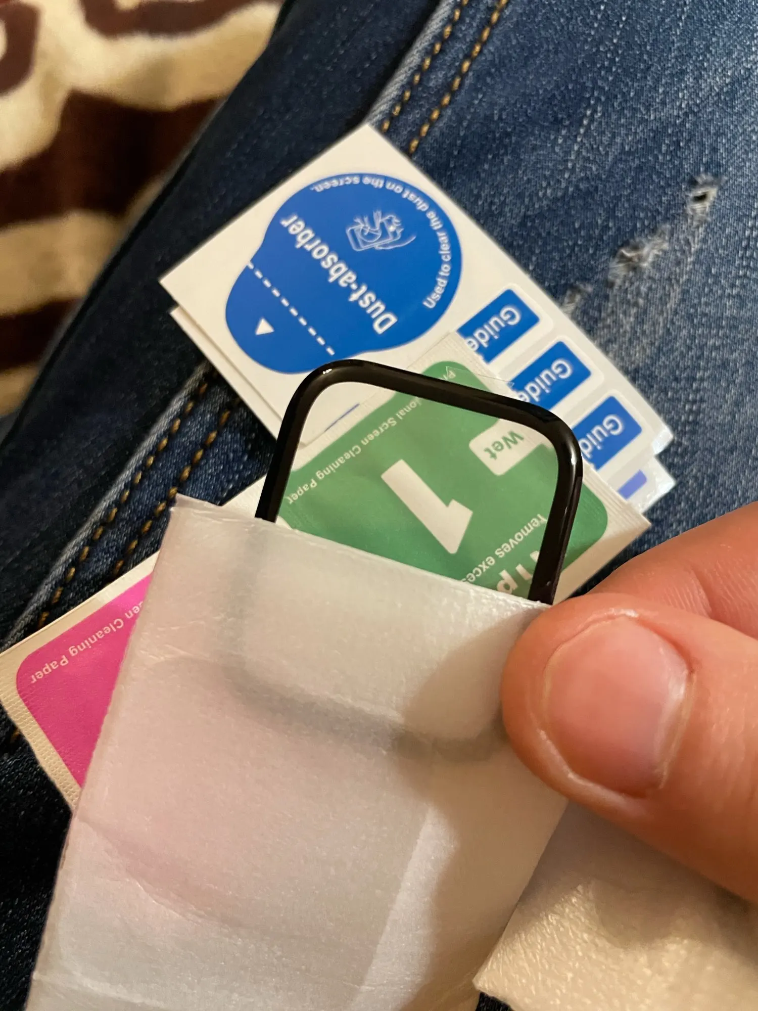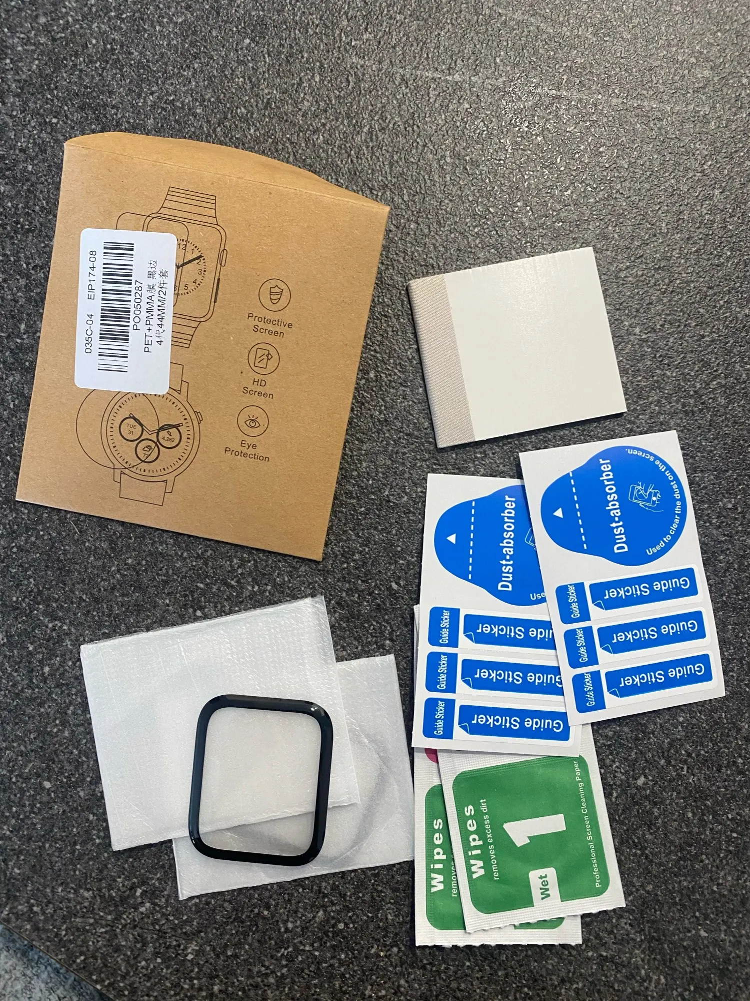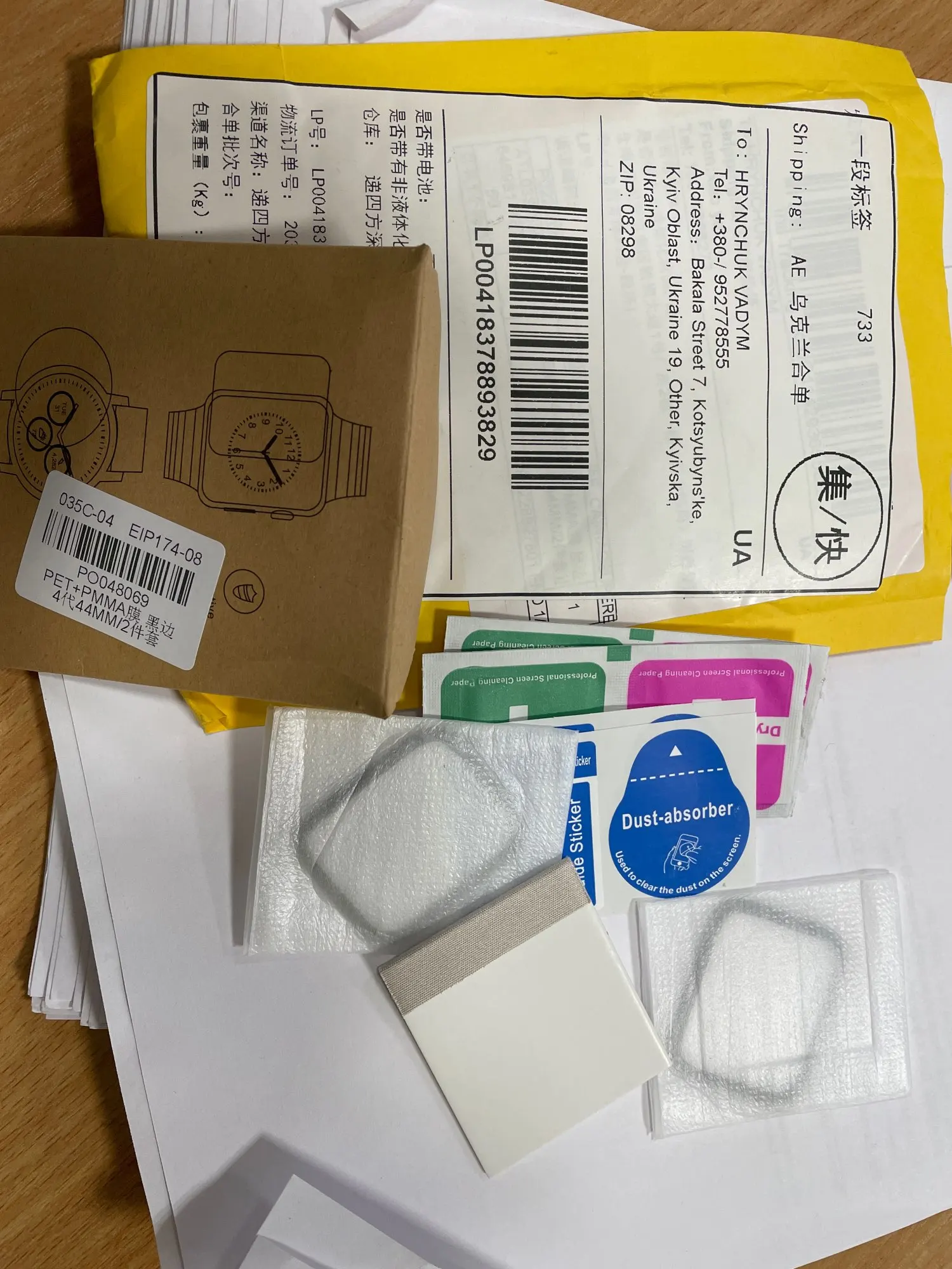 Доставка Быстрая! Приклейка защитного экрана на Apple Watch SE 44mm заняла около 10 мин и фена для волос(рекомендую для разглаживания углов и пузырей)! За неделю эксплуатации вылез один пузырь с краю, но фен помог всё исправить!!! Рекомендую к покупке! Закажу ещё