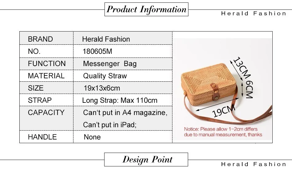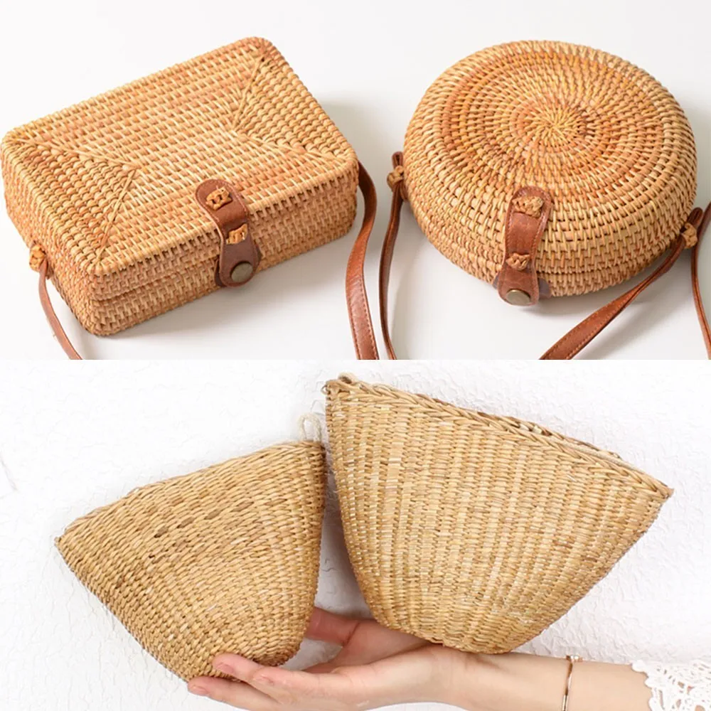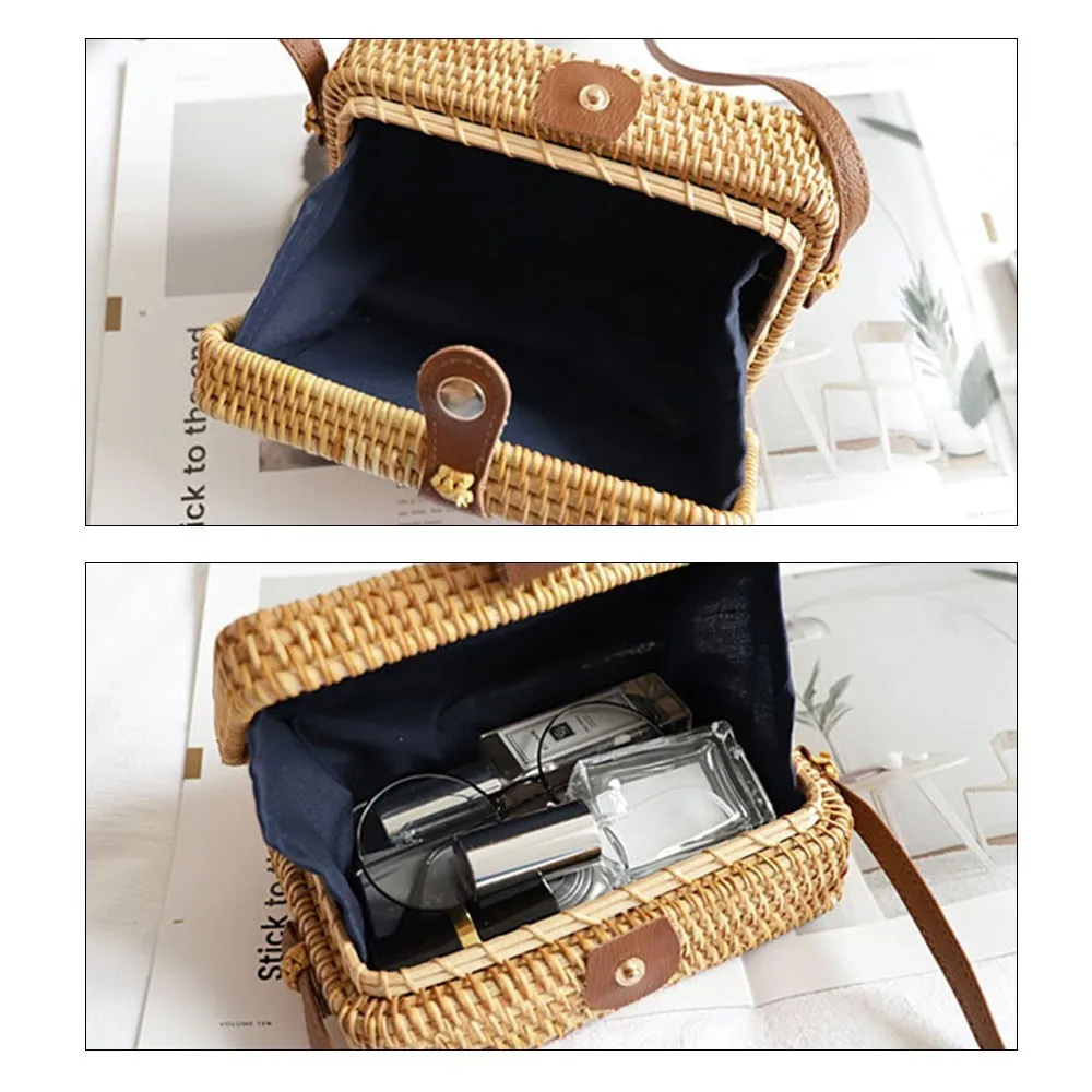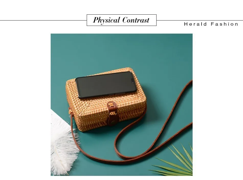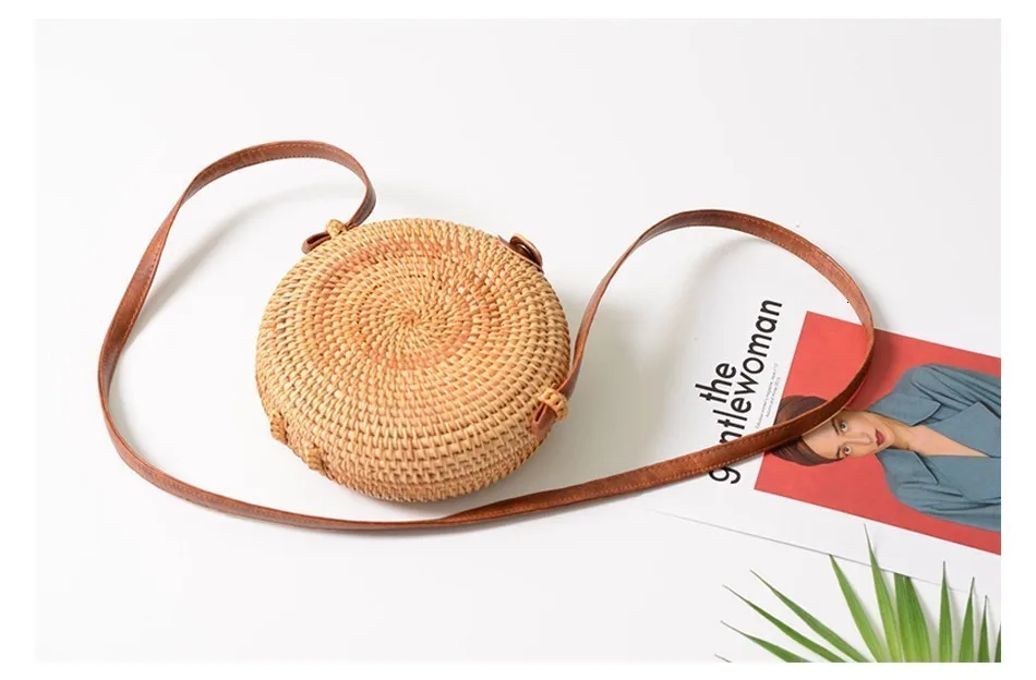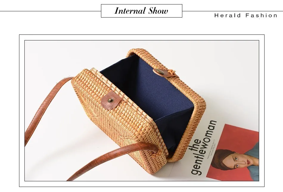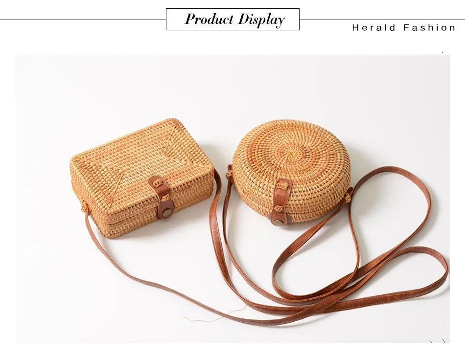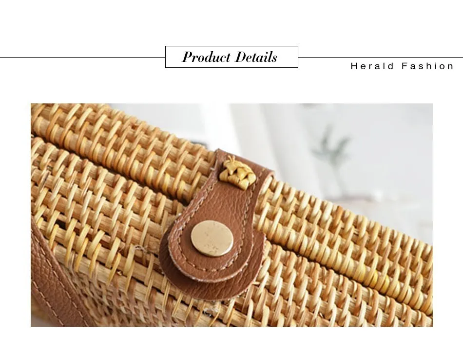 Женская Соломенная Сумка Herald, летняя круглая плетеная Сумка из ротанга, ручная работа, пляжная сумка-Кроссбоди