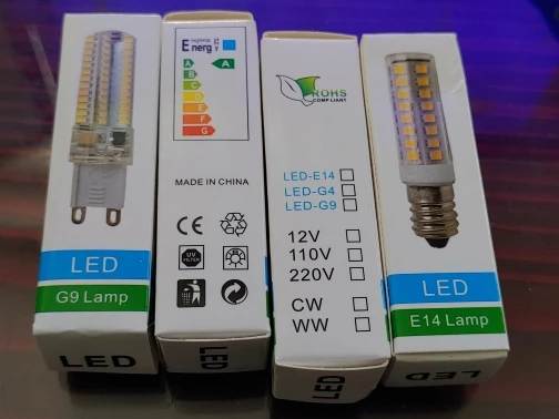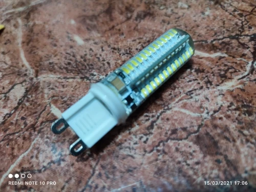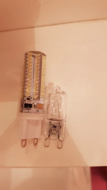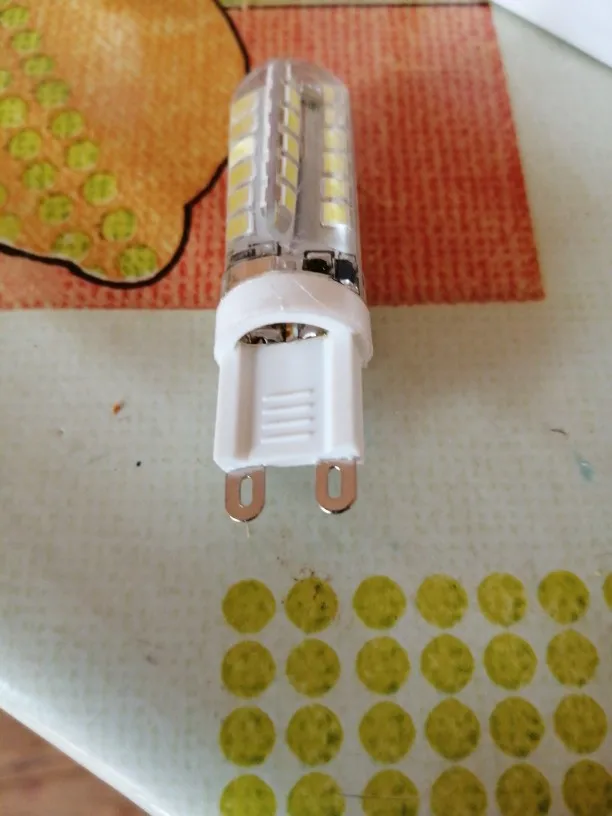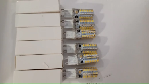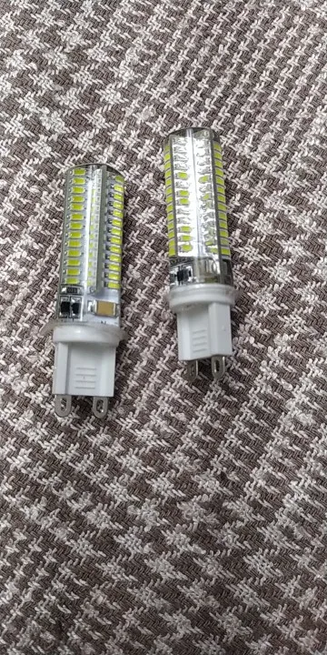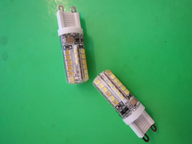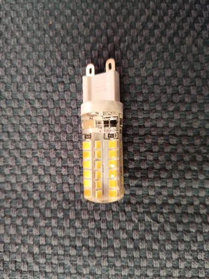 Получил лампочки g9 7вт , светят чуть тусклее обычных галогеновых на 40вт, заказывал 25штук в теплом белом свете ( жёлтый) , все работают .