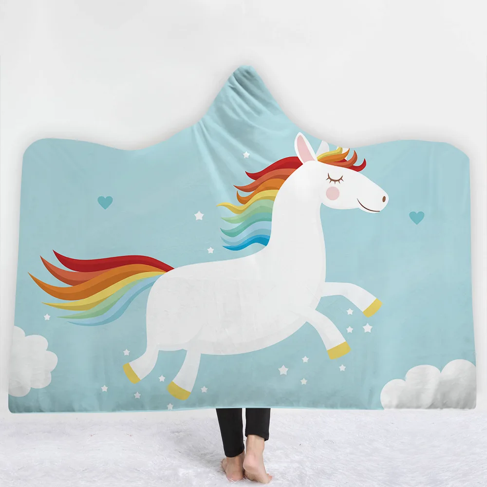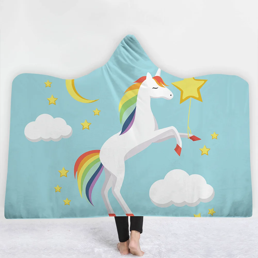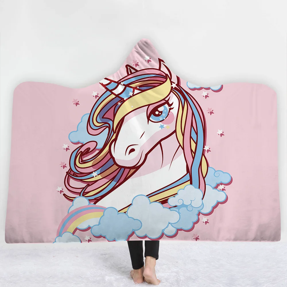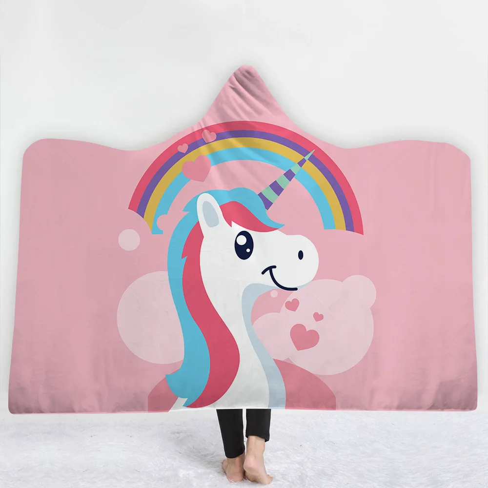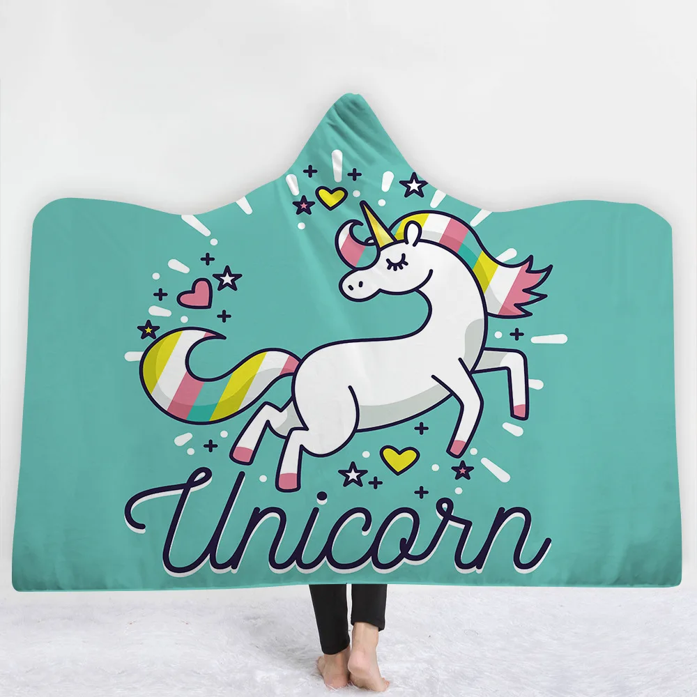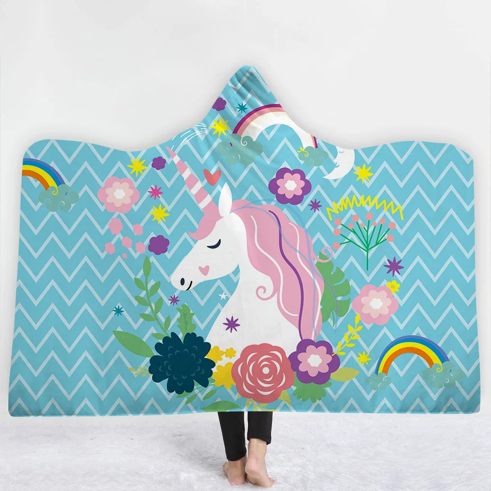 Плюшевое одеяло с капюшоном, с рисунком радужного единорога, зимнее теплое, пригодное для носки, 40 видов, s, для взрослых и детей