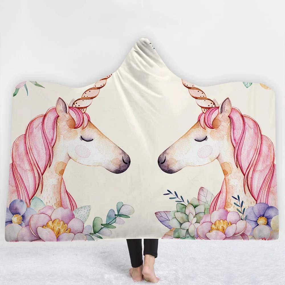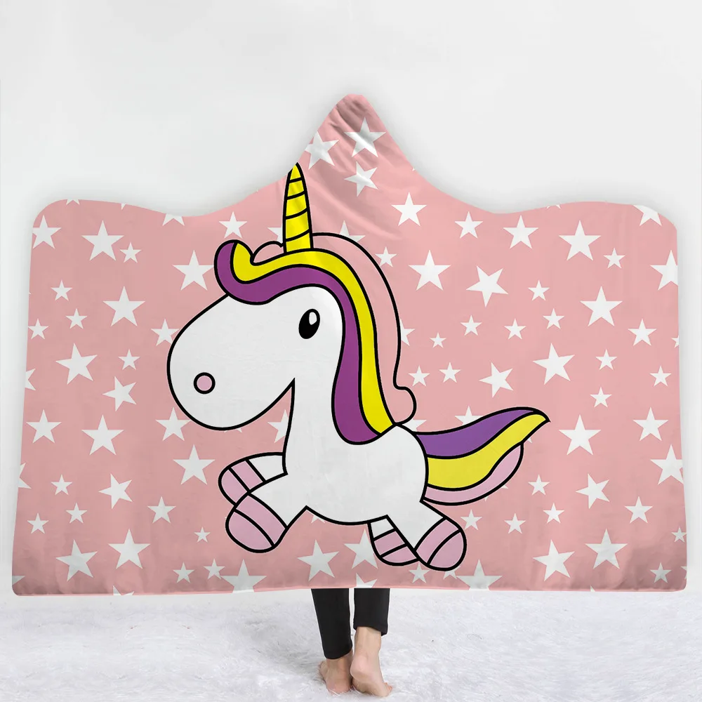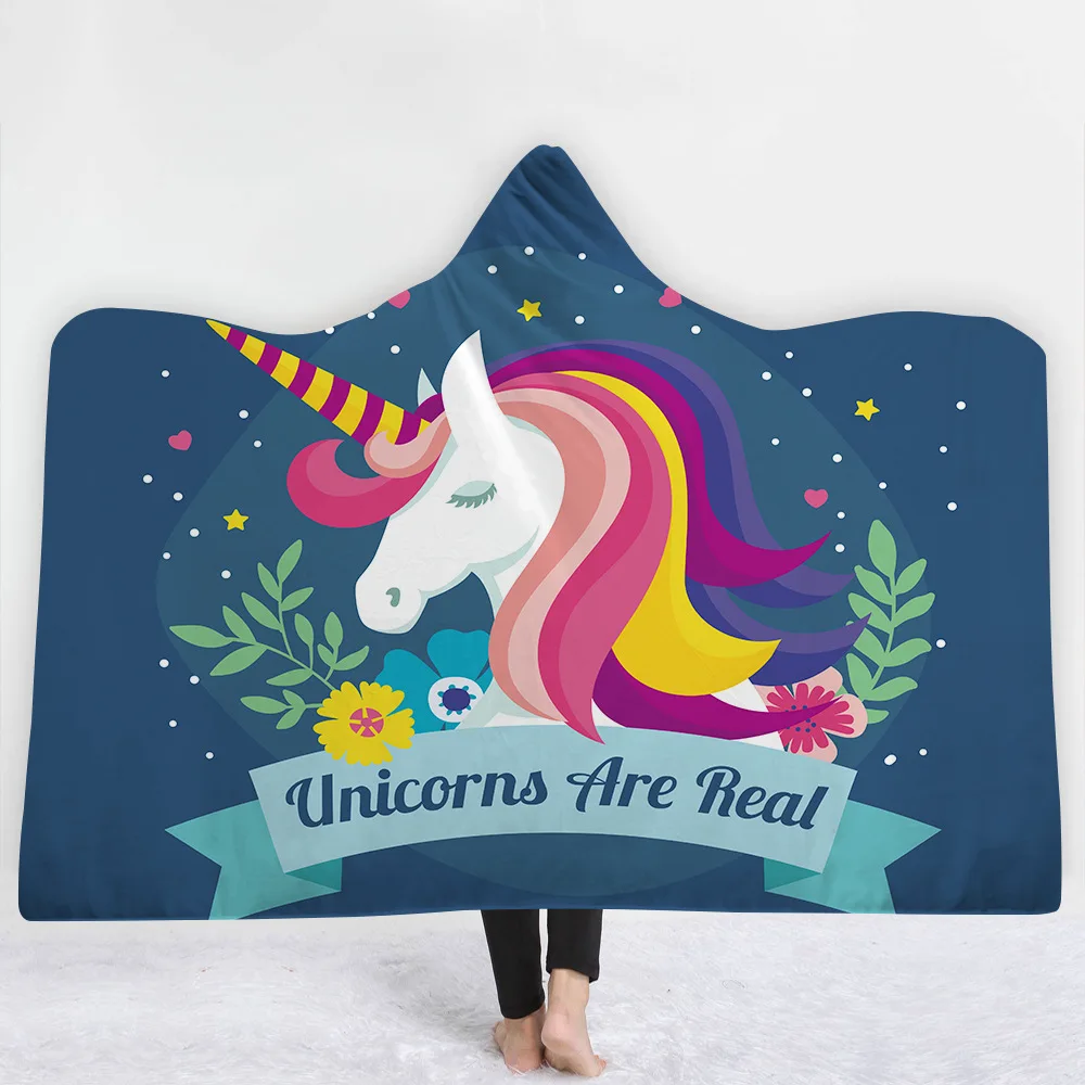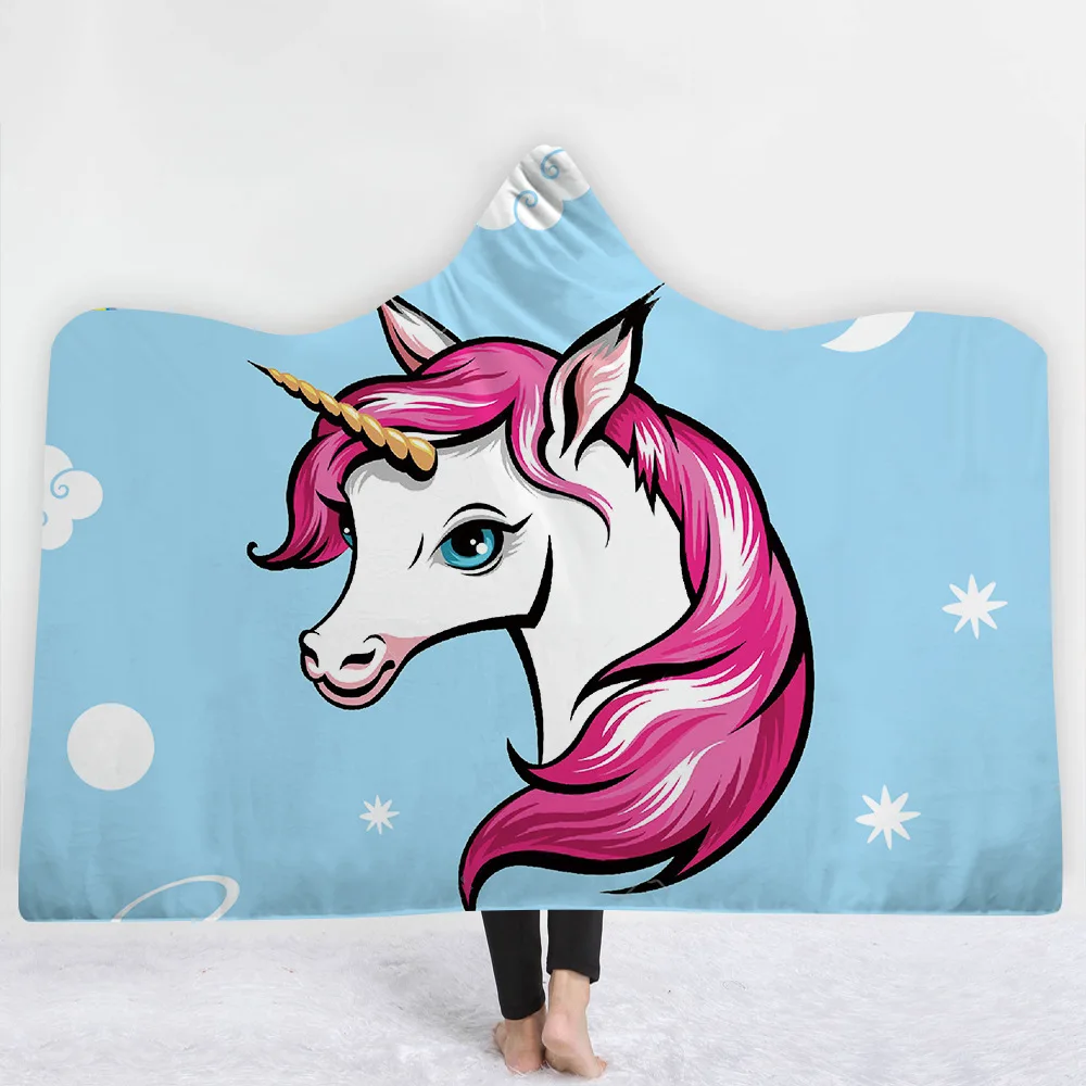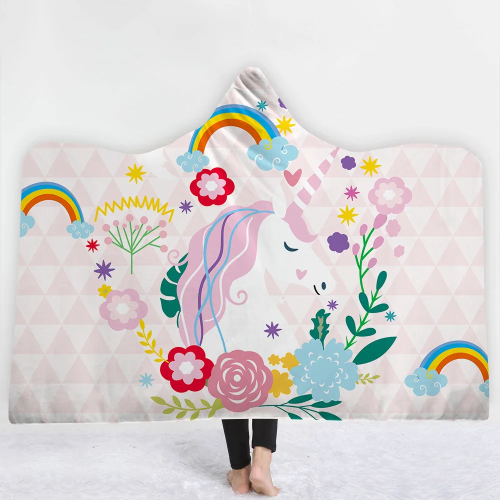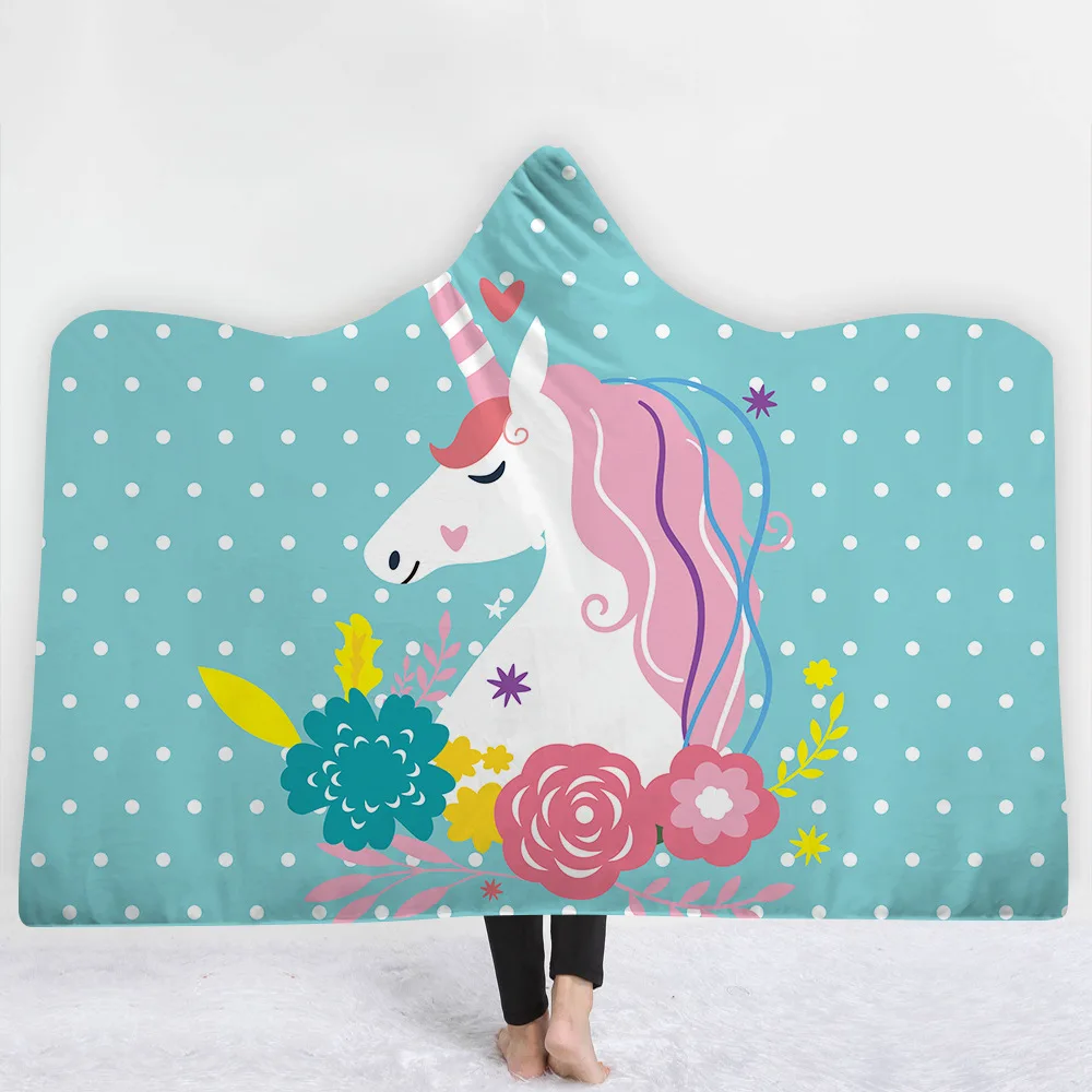 Плюшевое одеяло с капюшоном, с рисунком радужного единорога, зимнее теплое, пригодное для носки, 40 видов, s, для взрослых и детей