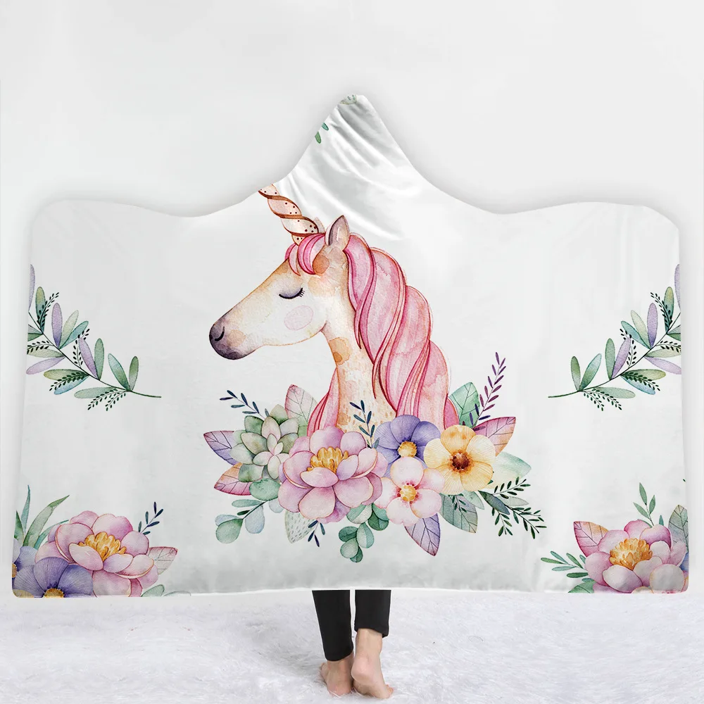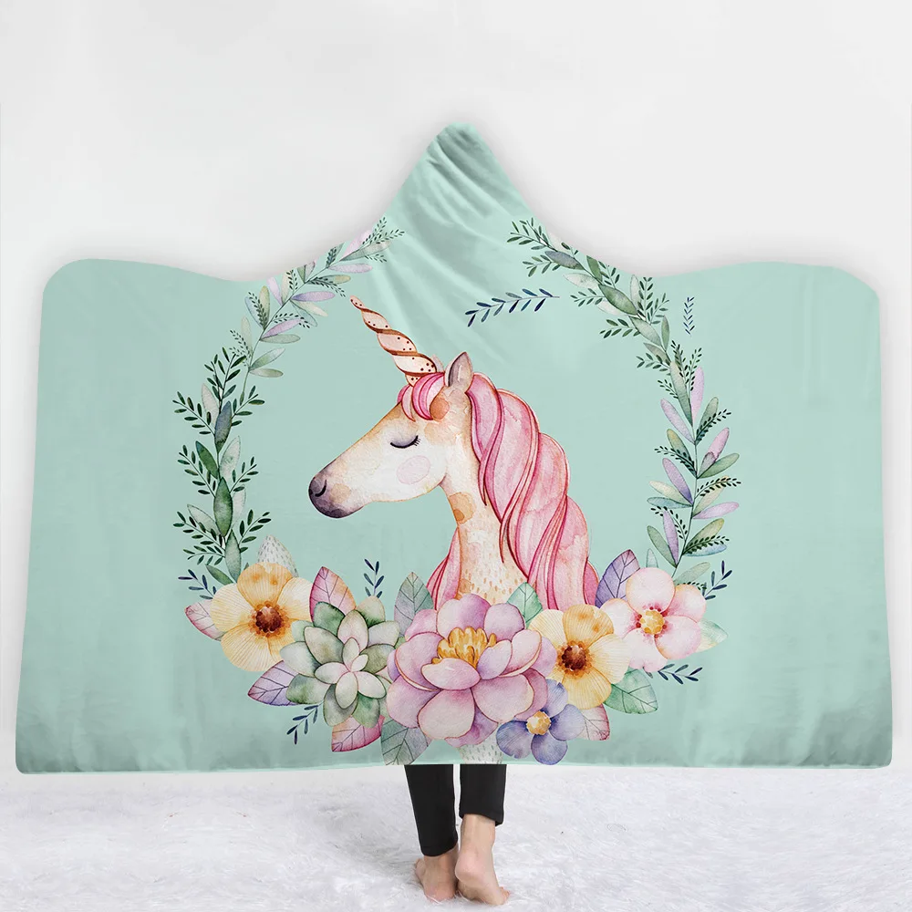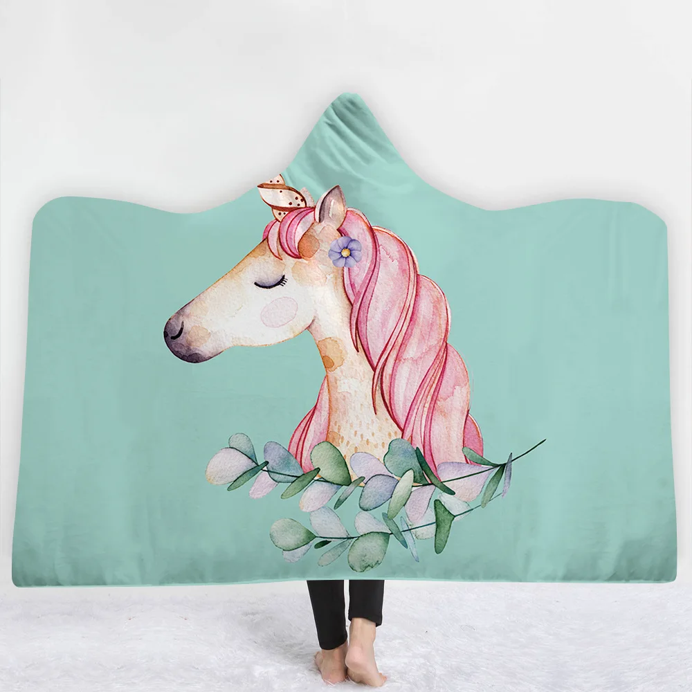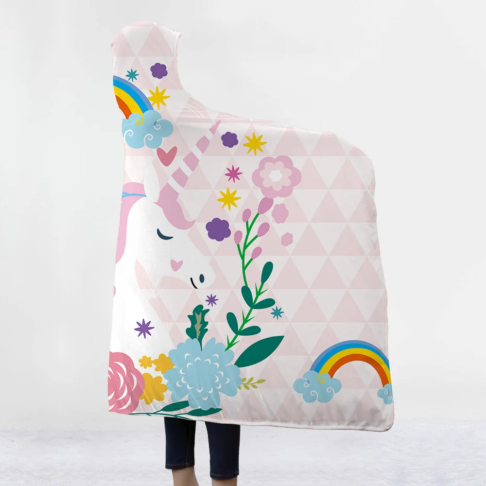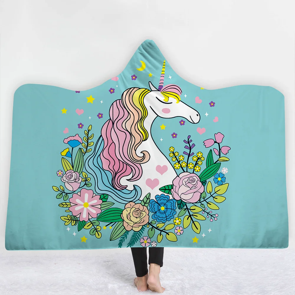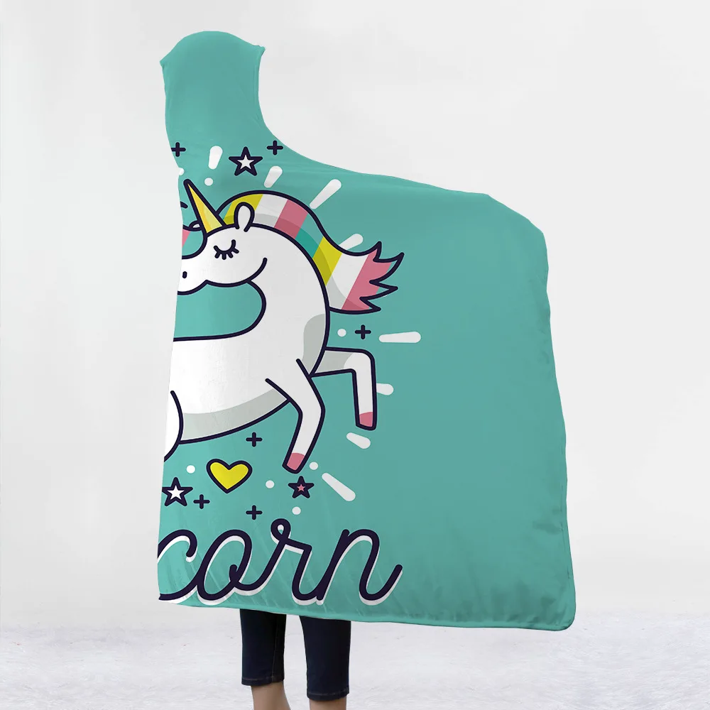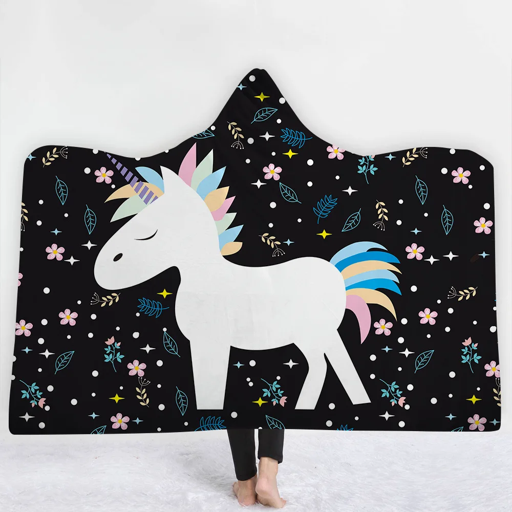 Плюшевое одеяло с капюшоном, с рисунком радужного единорога, зимнее теплое, пригодное для носки, 40 видов, s, для взрослых и детей