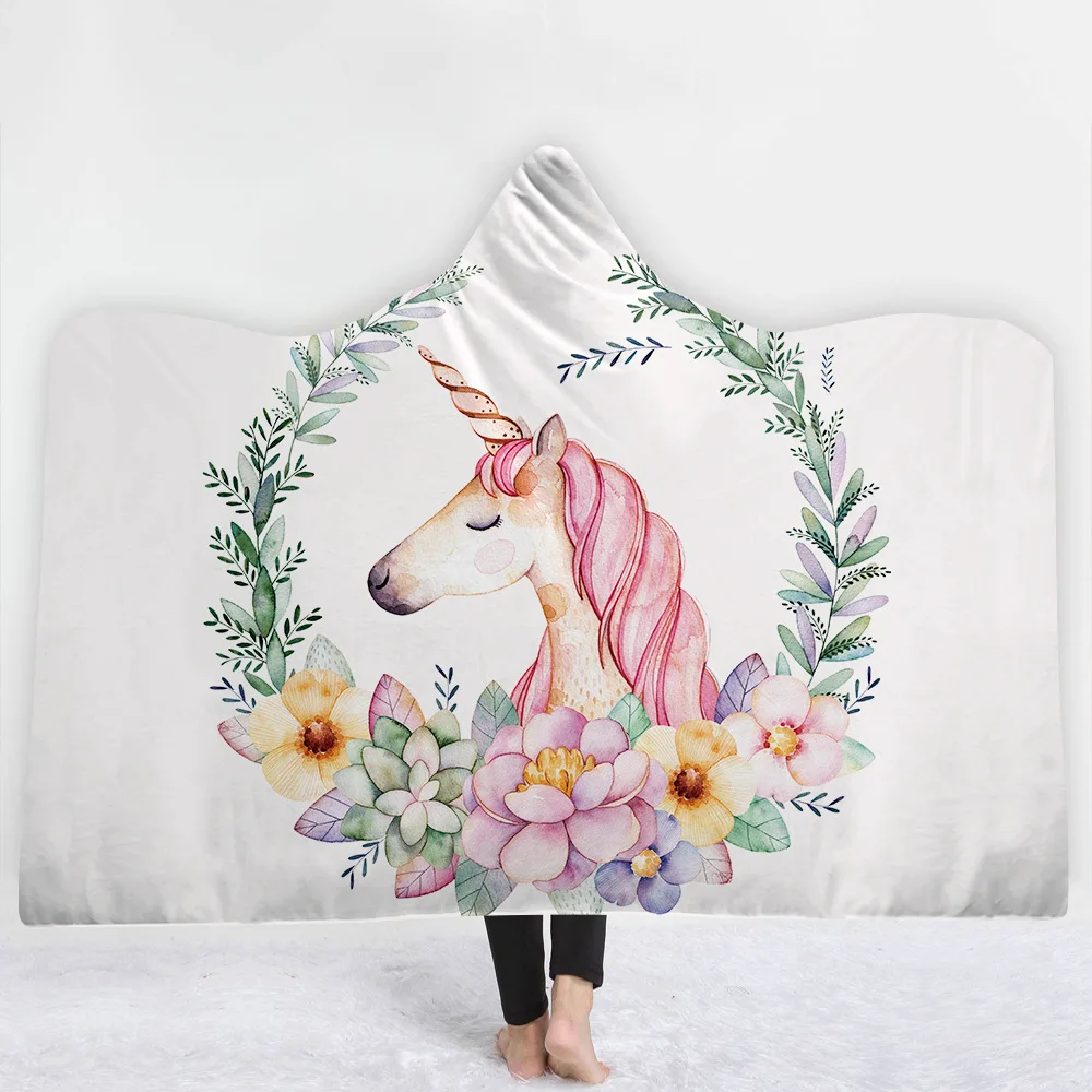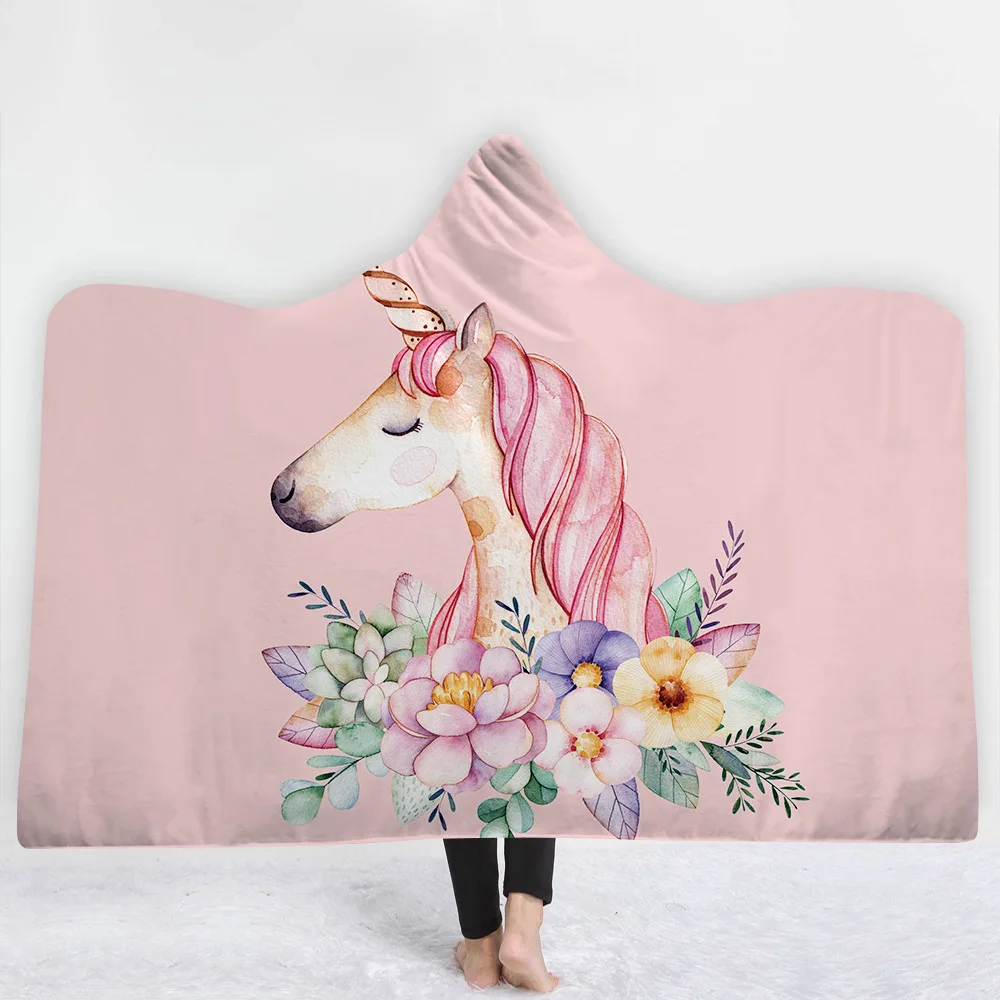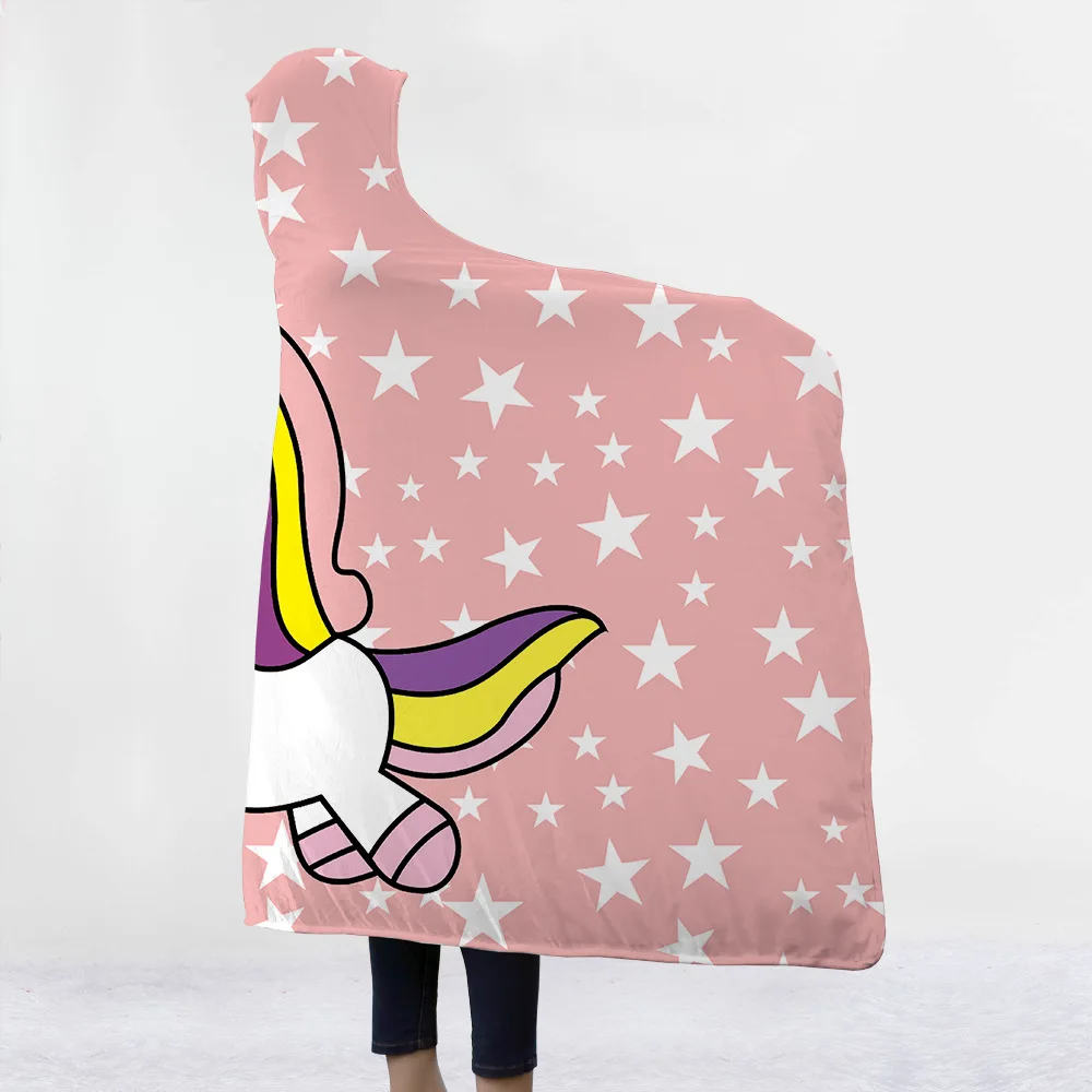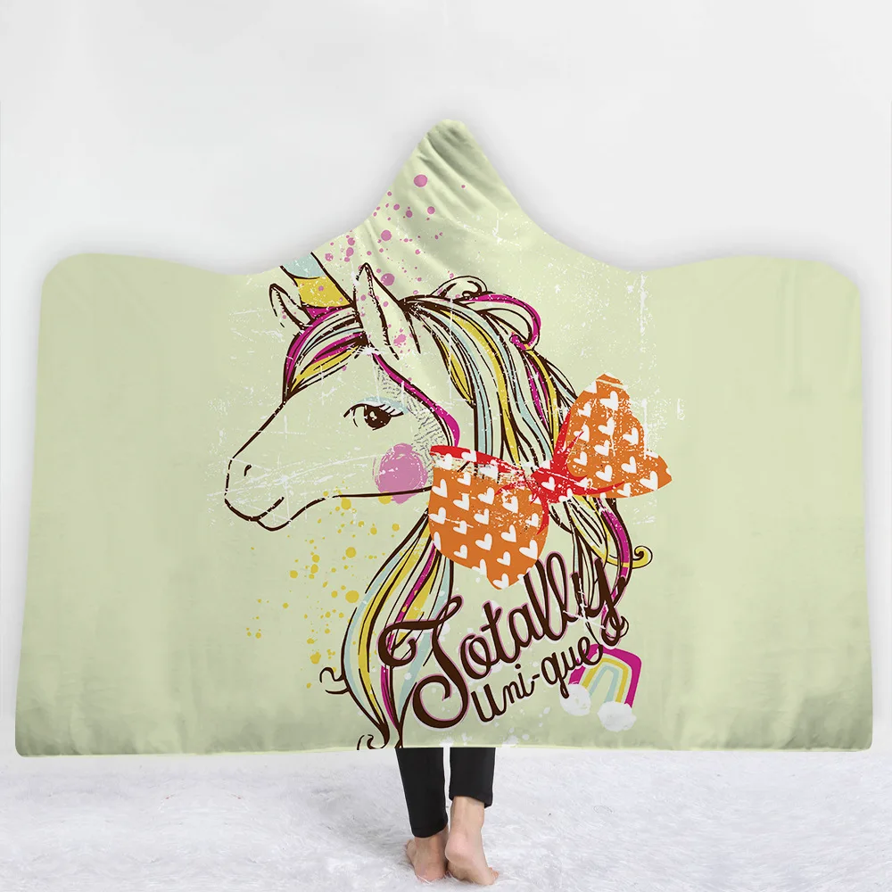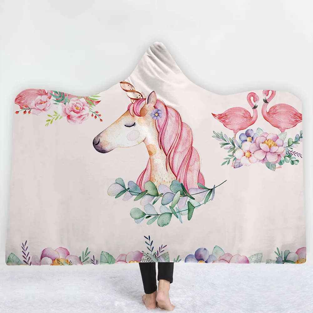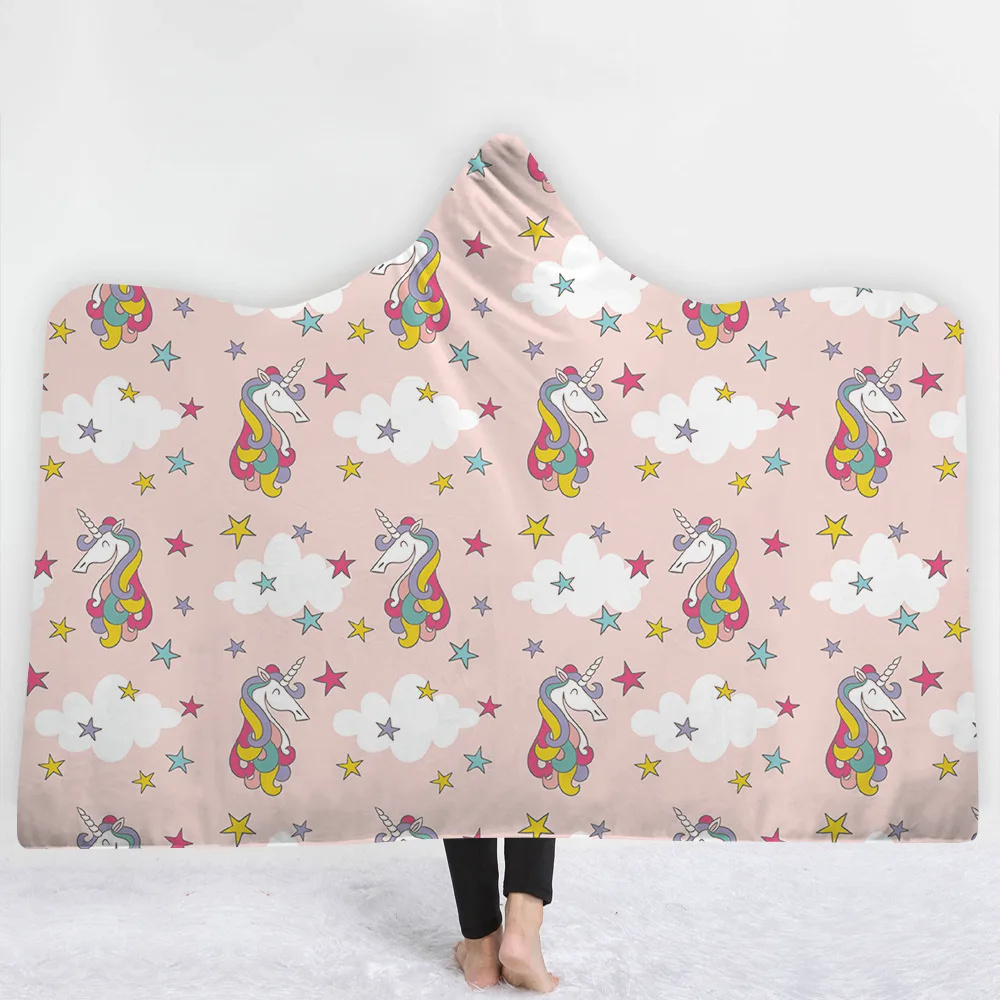 Плюшевое одеяло с капюшоном, с рисунком радужного единорога, зимнее теплое, пригодное для носки, 40 видов, s, для взрослых и детей