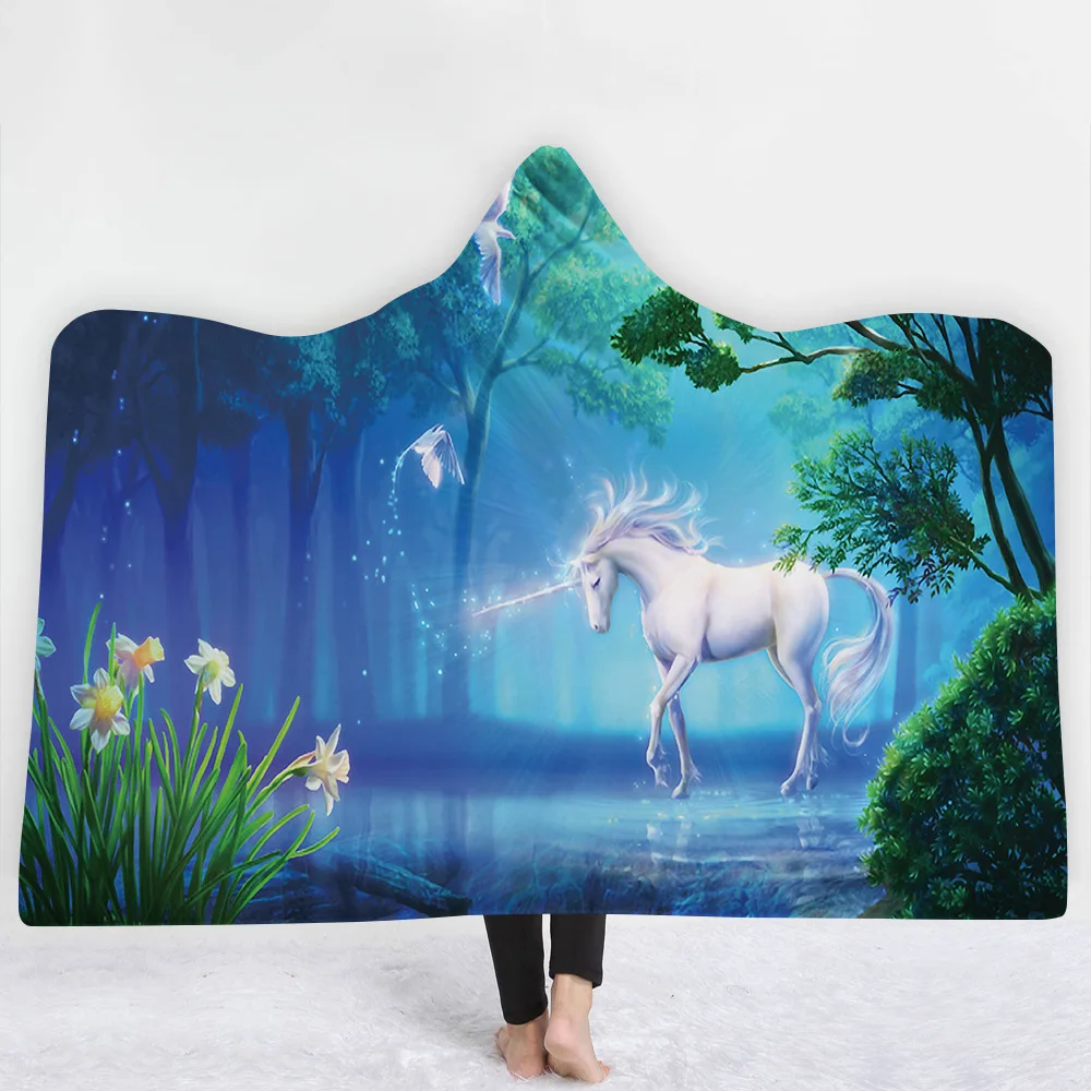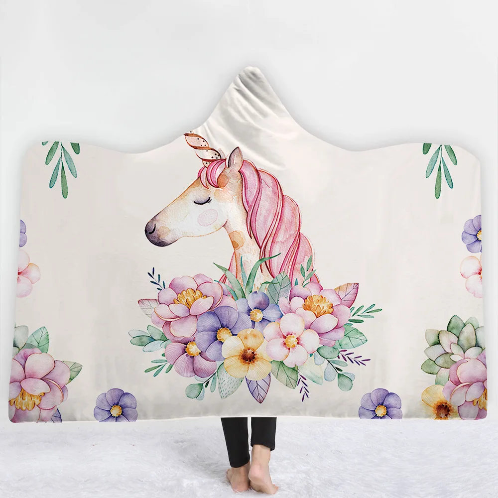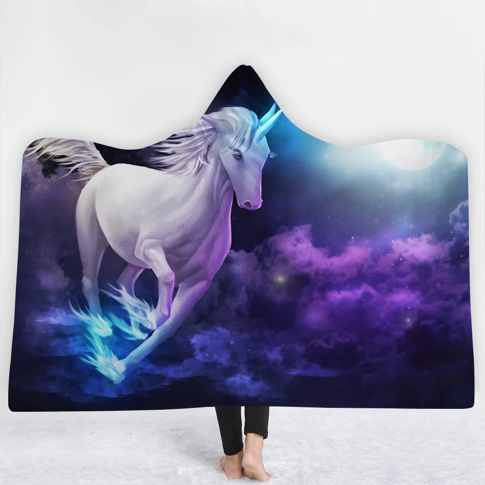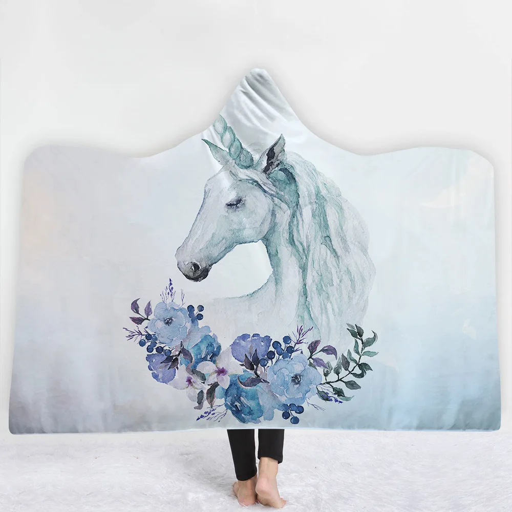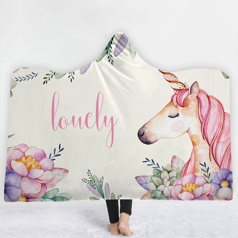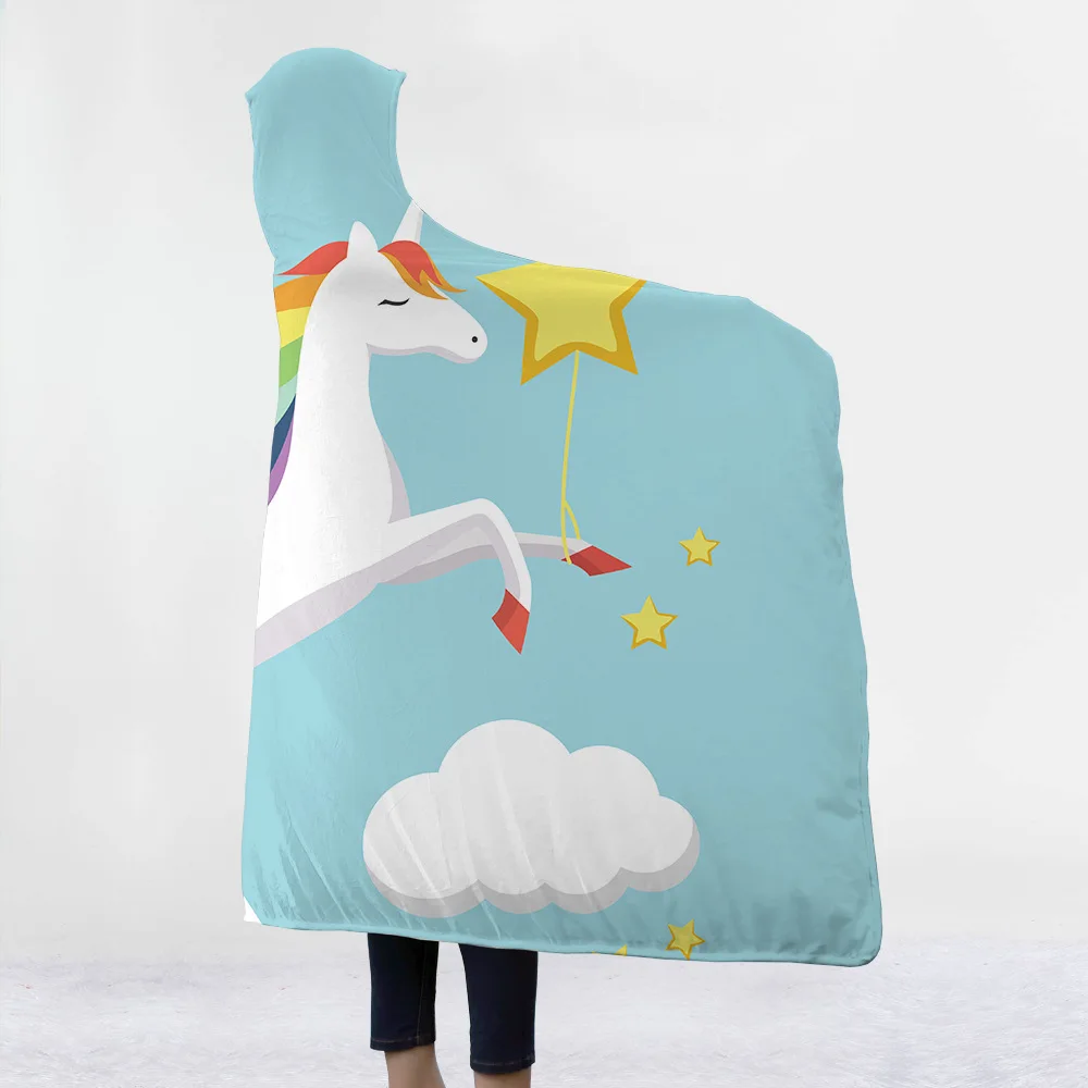 Плюшевое одеяло с капюшоном, с рисунком радужного единорога, зимнее теплое, пригодное для носки, 40 видов, s, для взрослых и детей