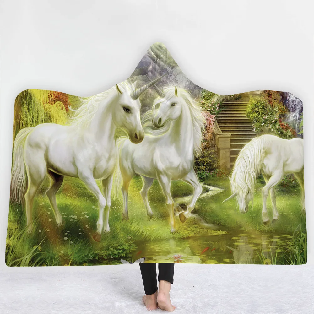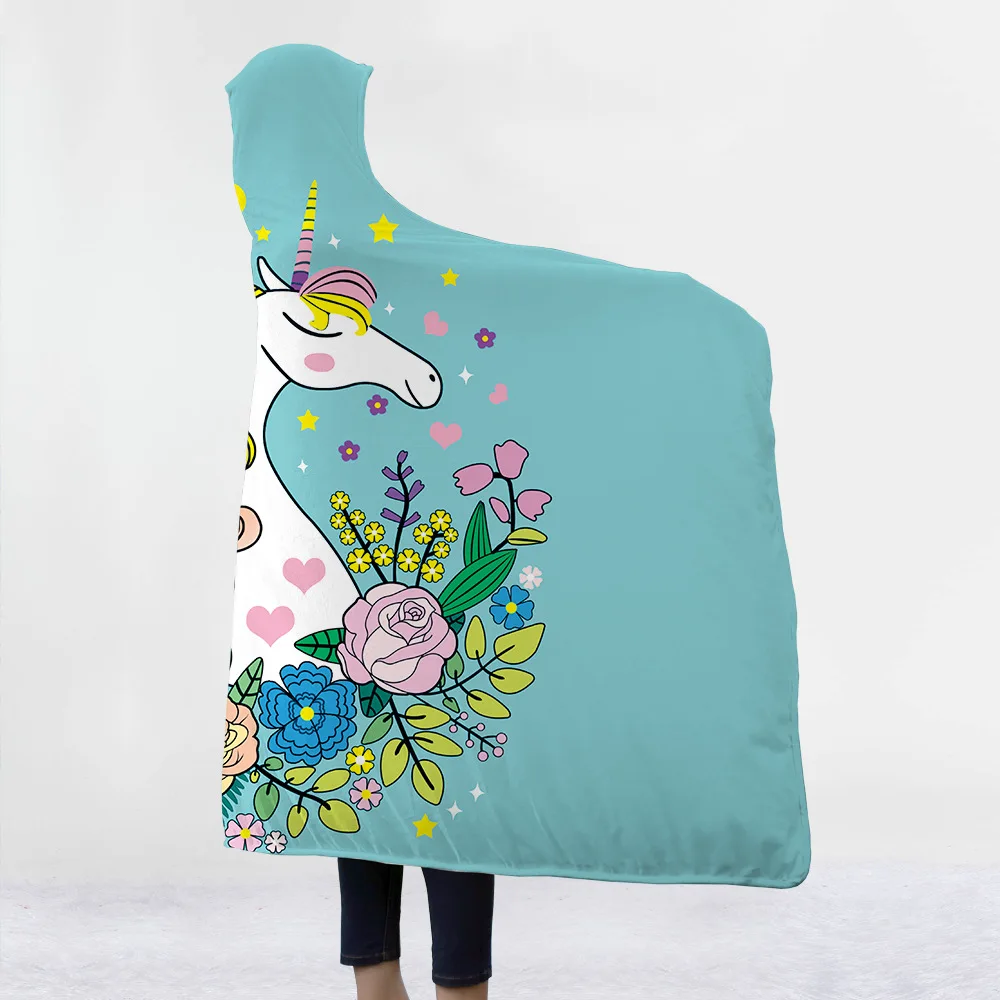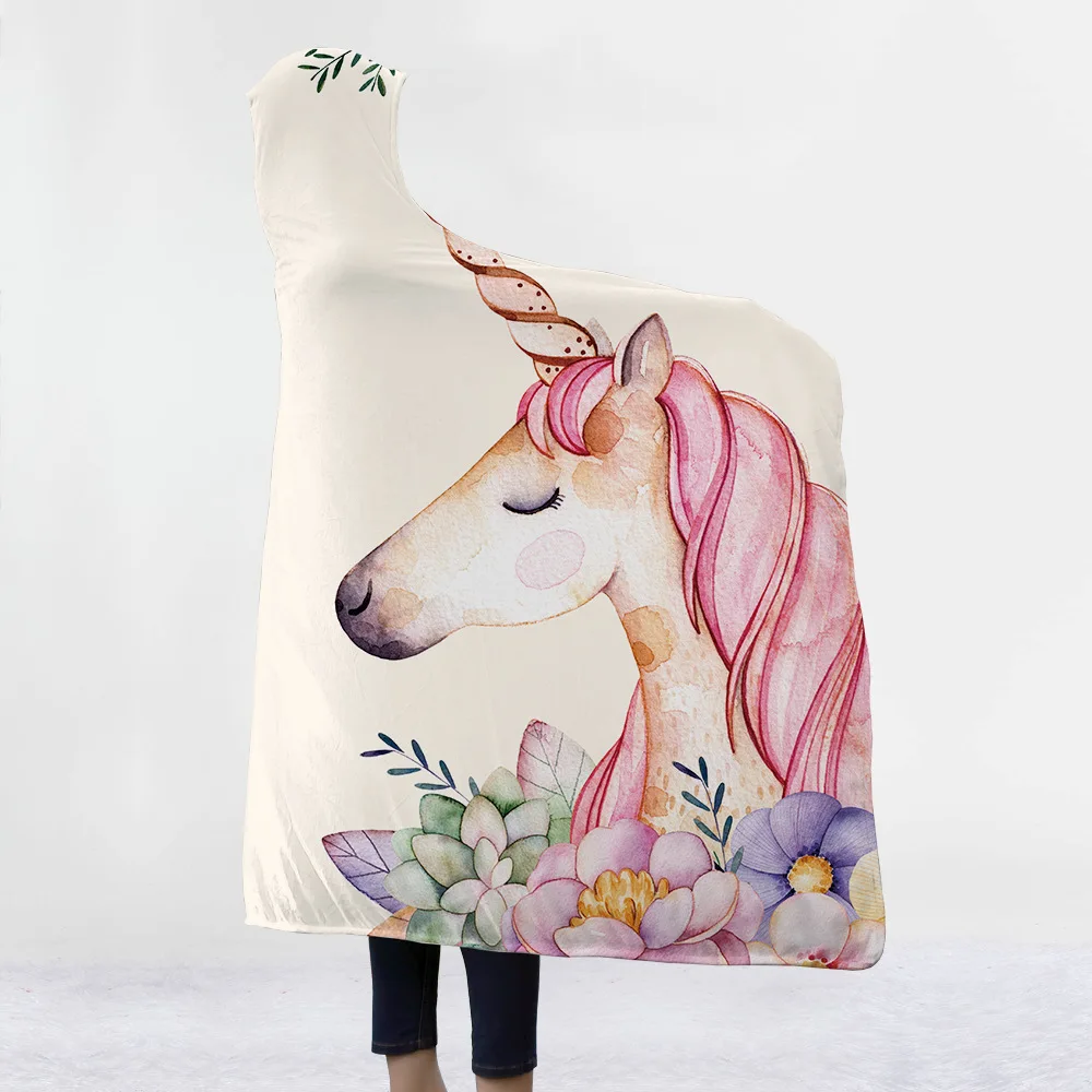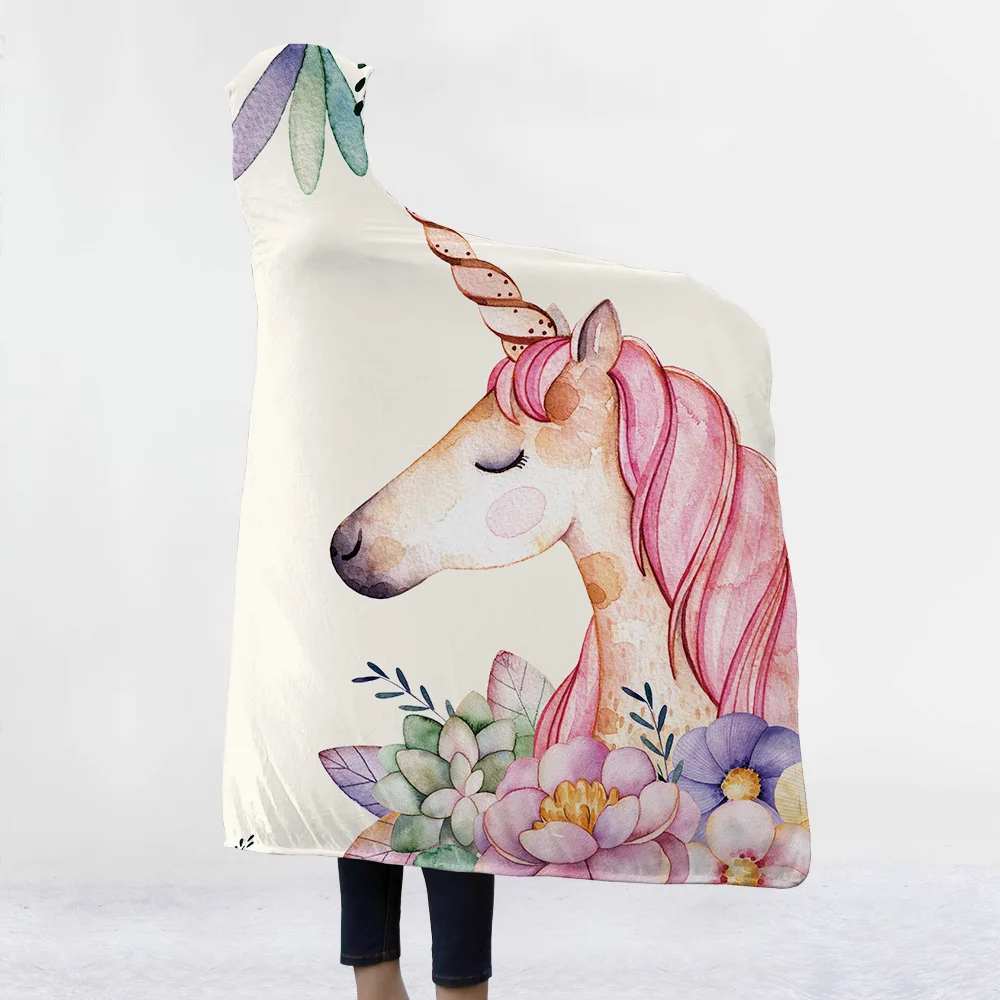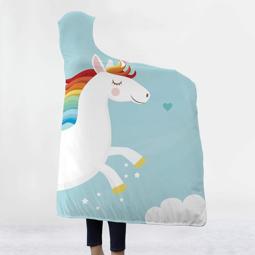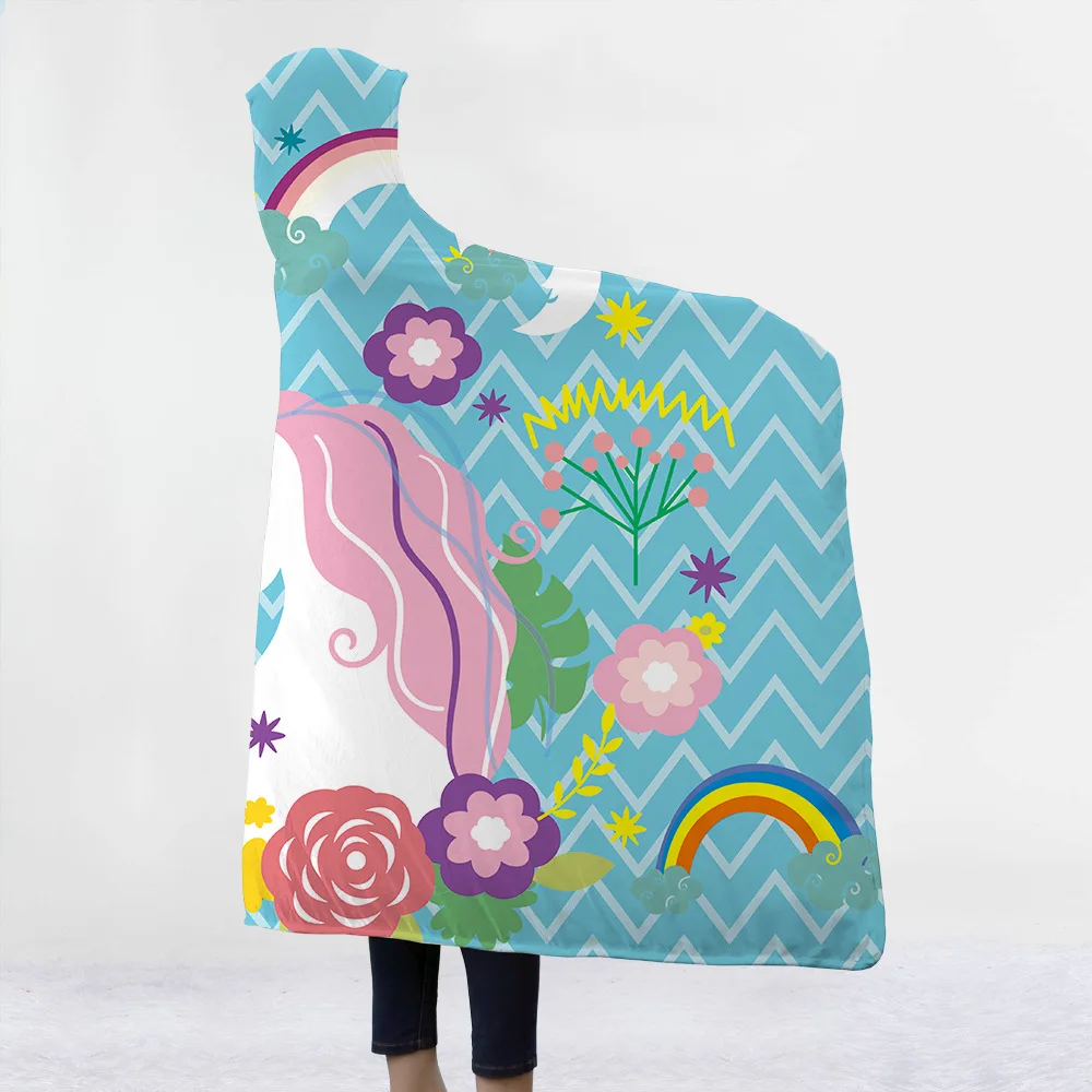 Плюшевое одеяло с капюшоном, с рисунком радужного единорога, зимнее теплое, пригодное для носки, 40 видов, s, для взрослых и детей