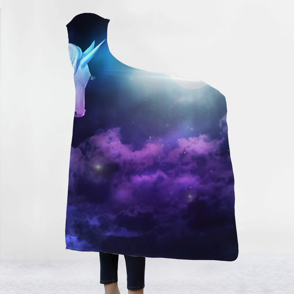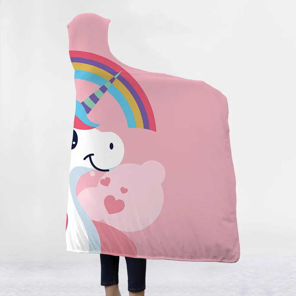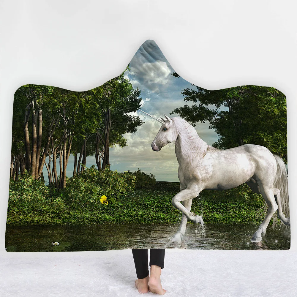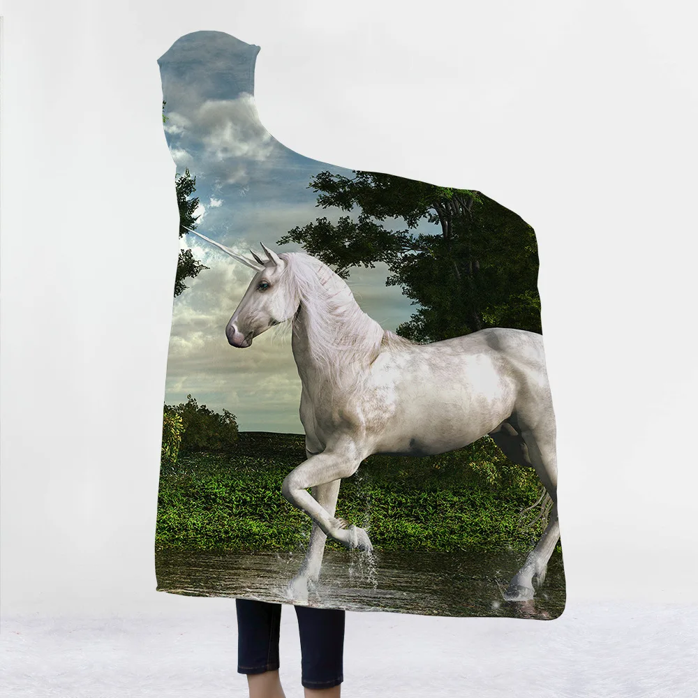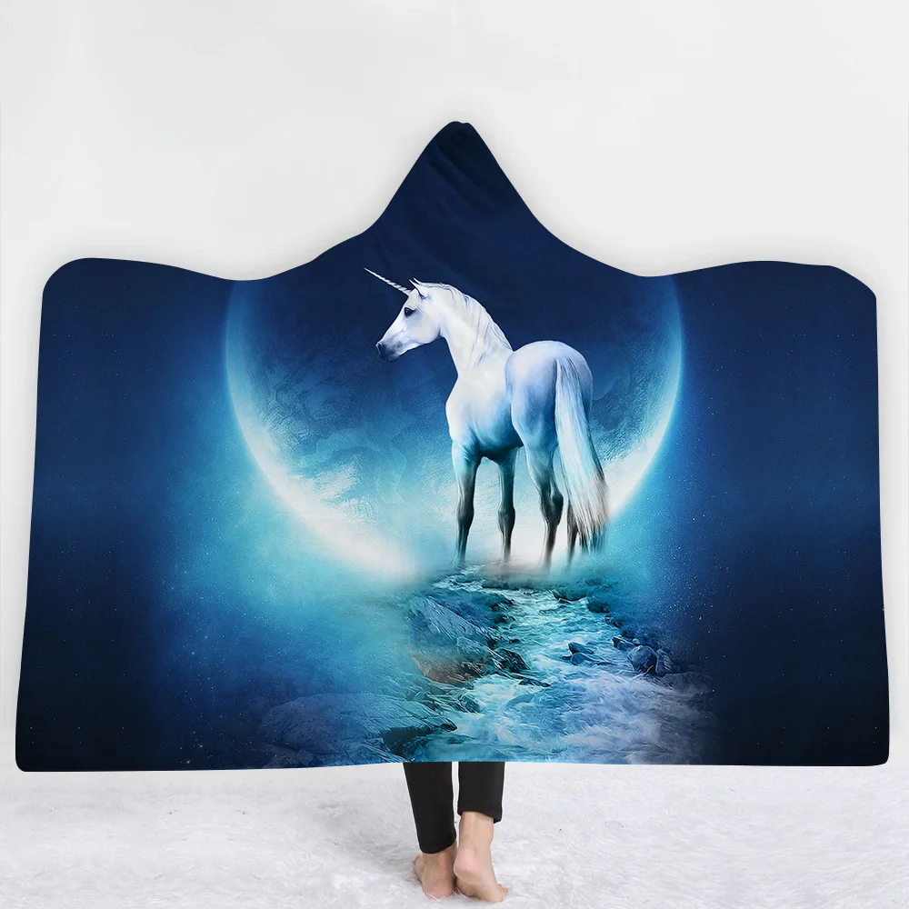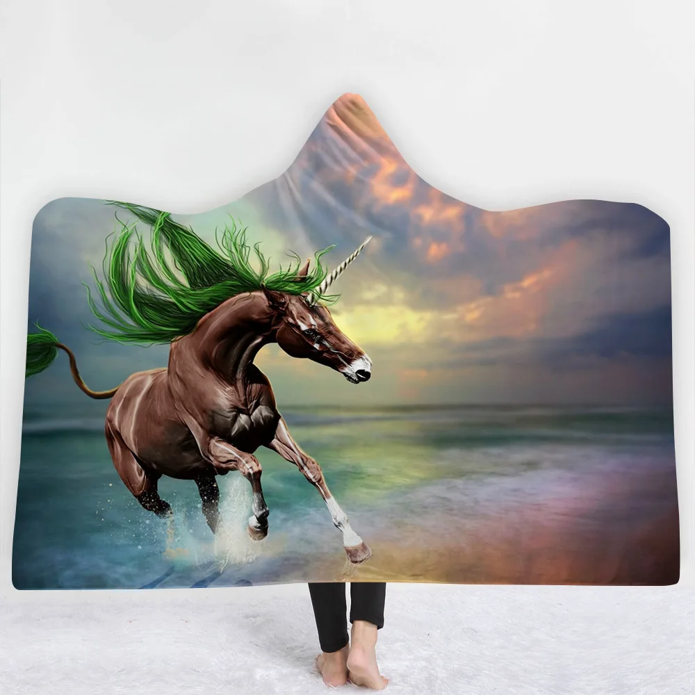 Плюшевое одеяло с капюшоном, с рисунком радужного единорога, зимнее теплое, пригодное для носки, 40 видов, s, для взрослых и детей