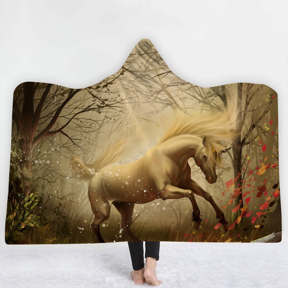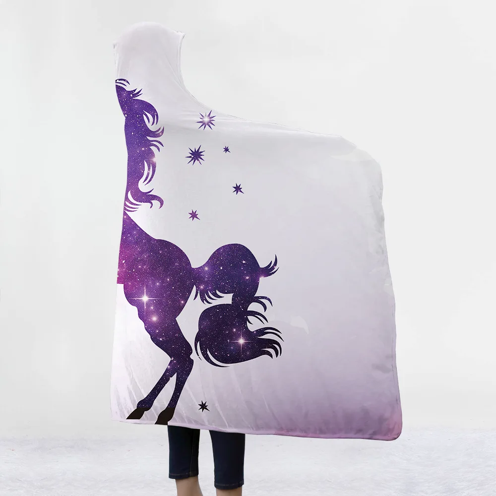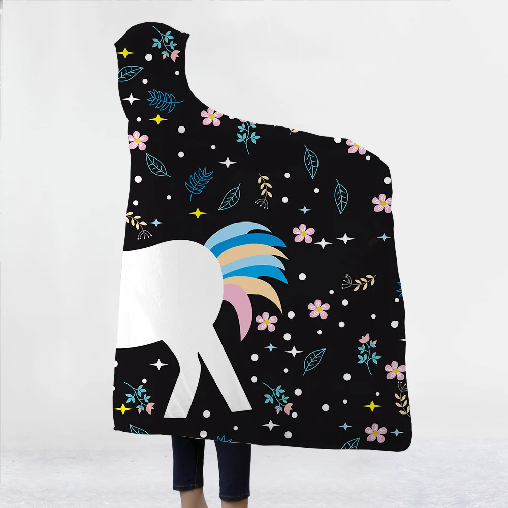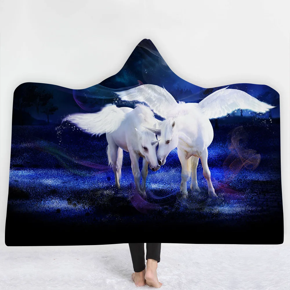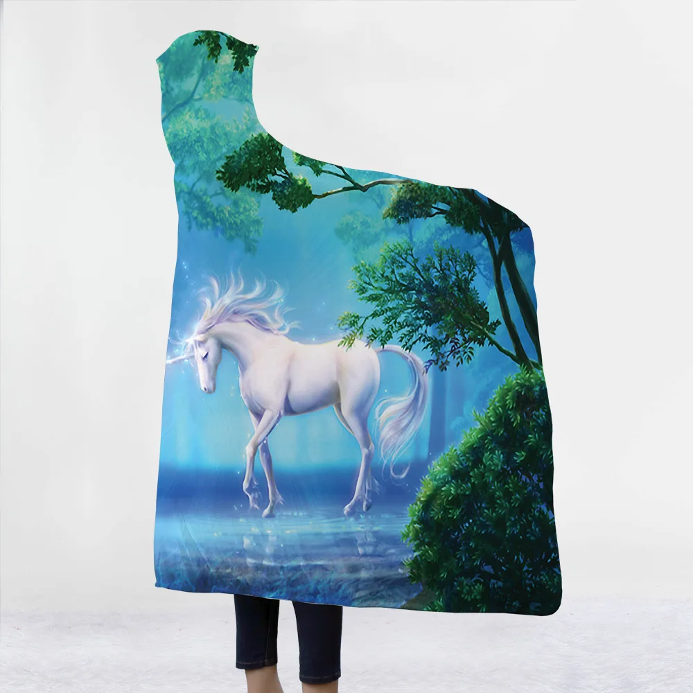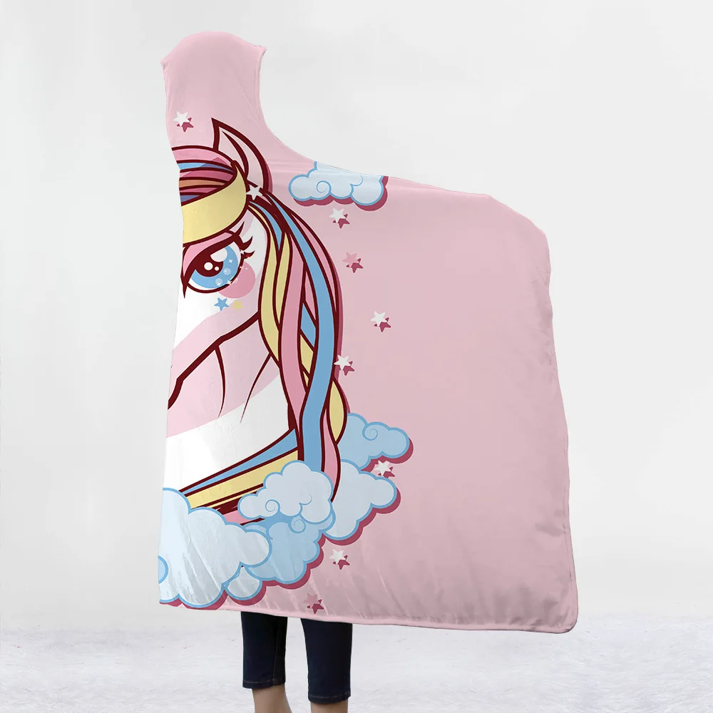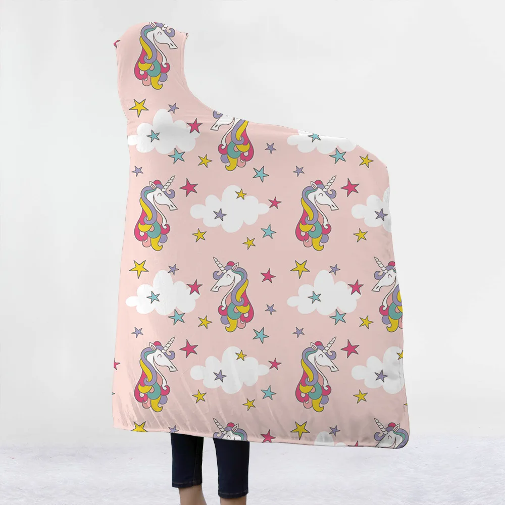 Плюшевое одеяло с капюшоном, с рисунком радужного единорога, зимнее теплое, пригодное для носки, 40 видов, s, для взрослых и детей