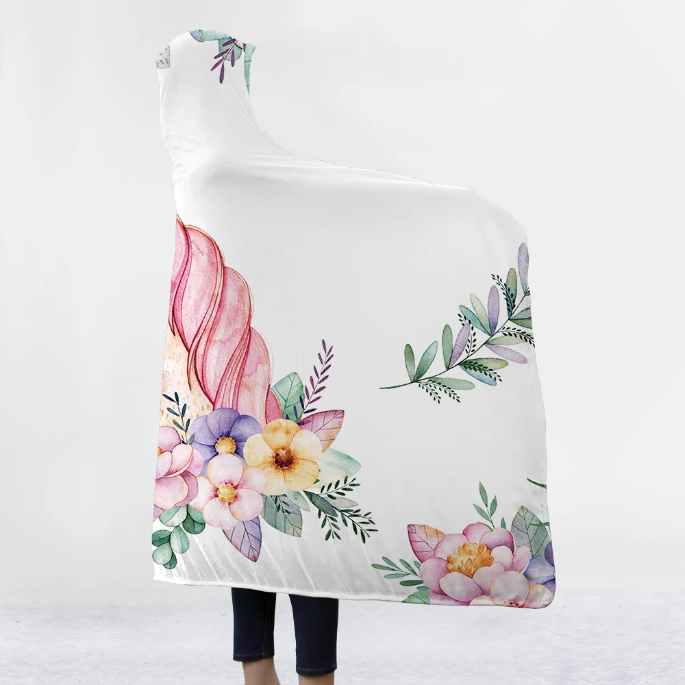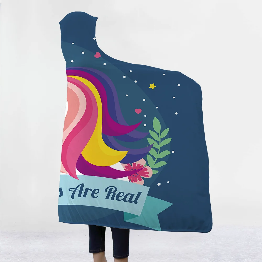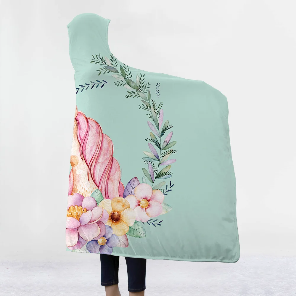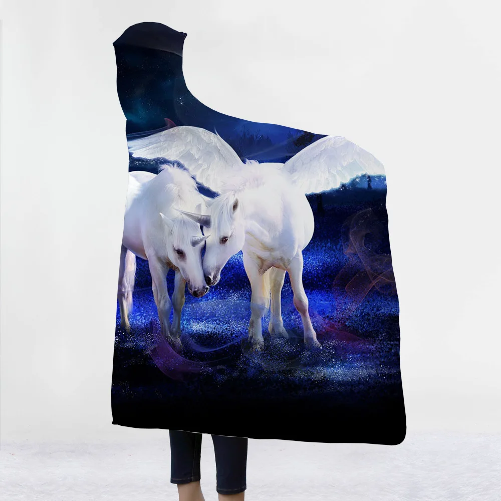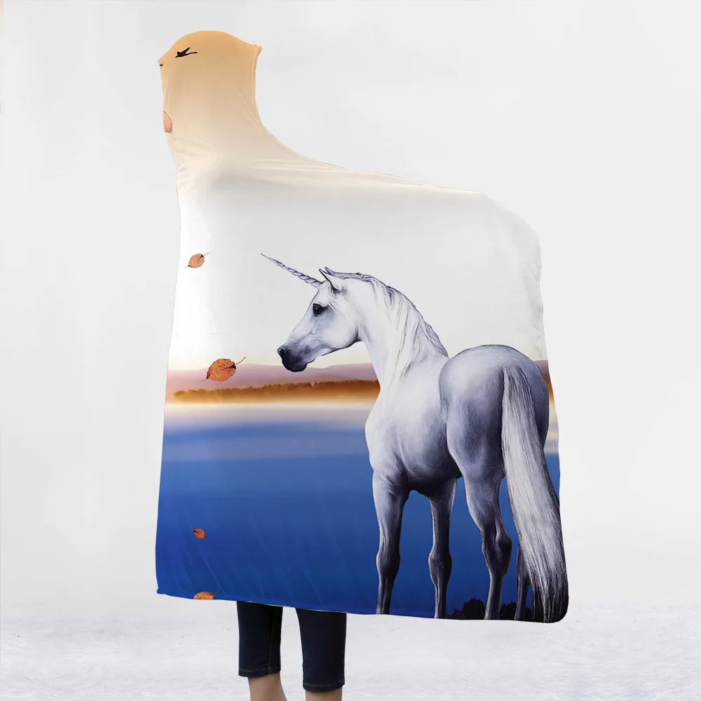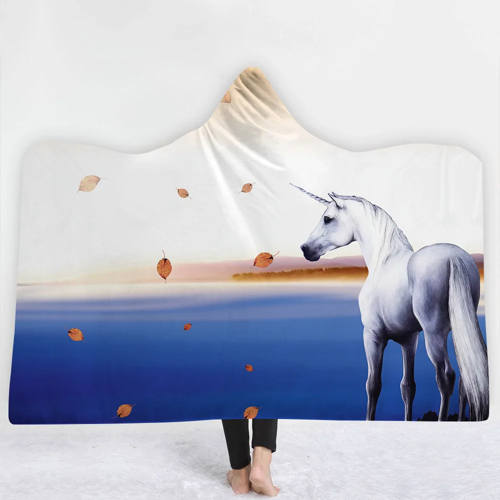 Плюшевое одеяло с капюшоном, с рисунком радужного единорога, зимнее теплое, пригодное для носки, 40 видов, s, для взрослых и детей