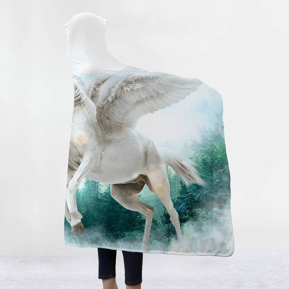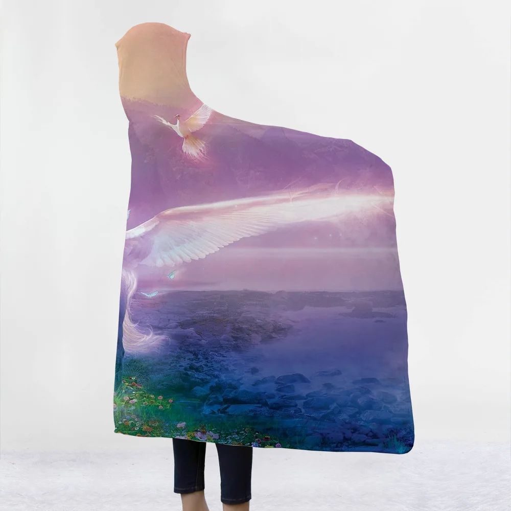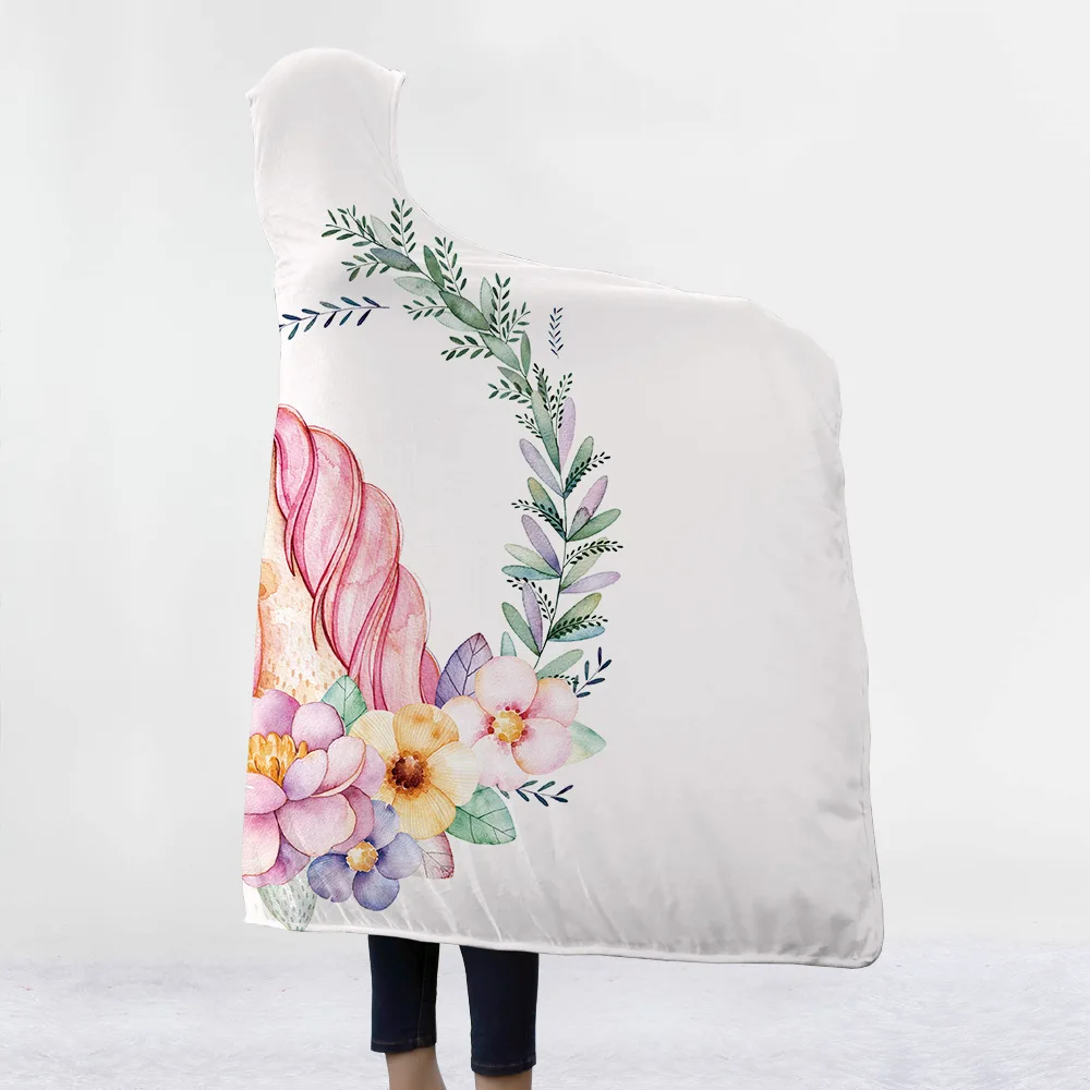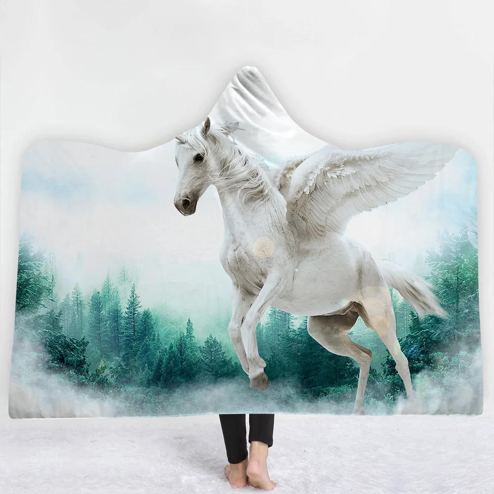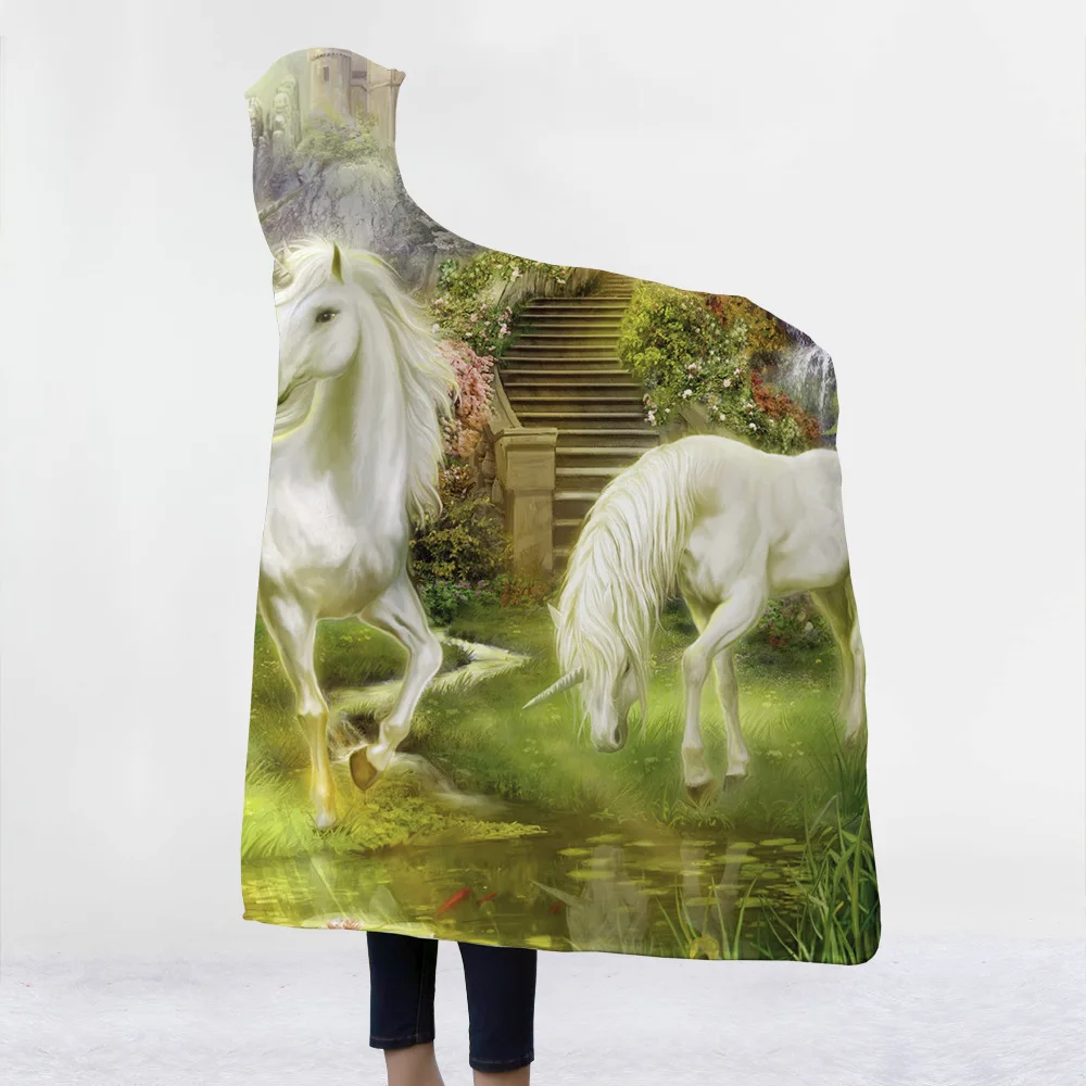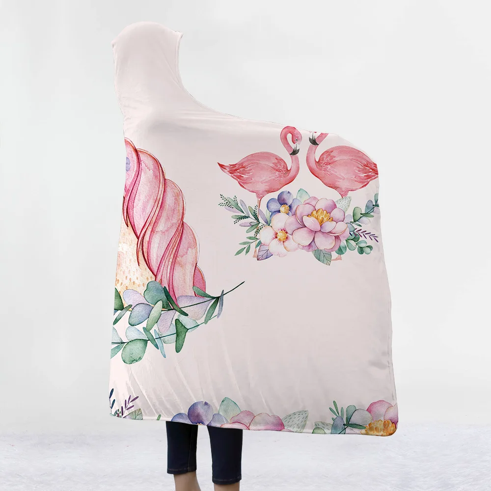 Плюшевое одеяло с капюшоном, с рисунком радужного единорога, зимнее теплое, пригодное для носки, 40 видов, s, для взрослых и детей