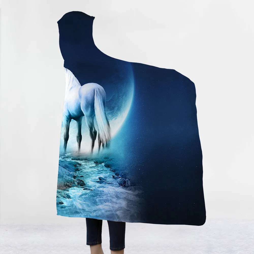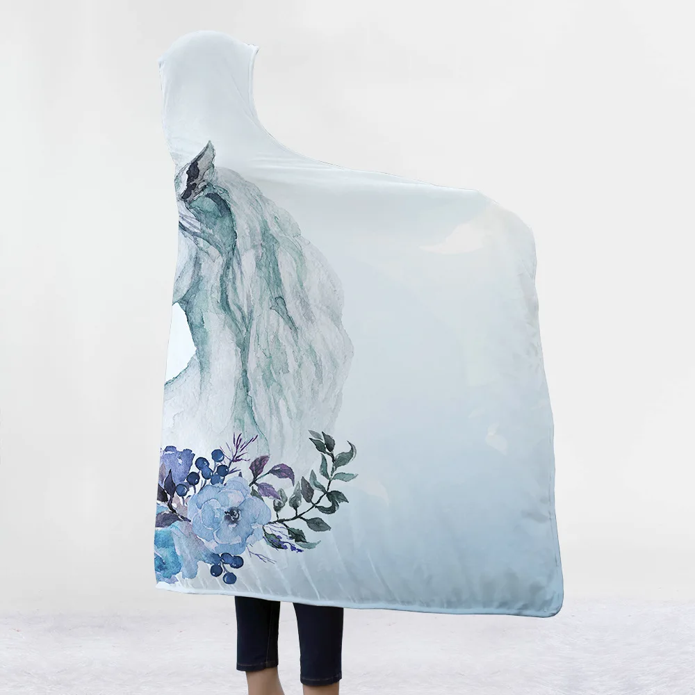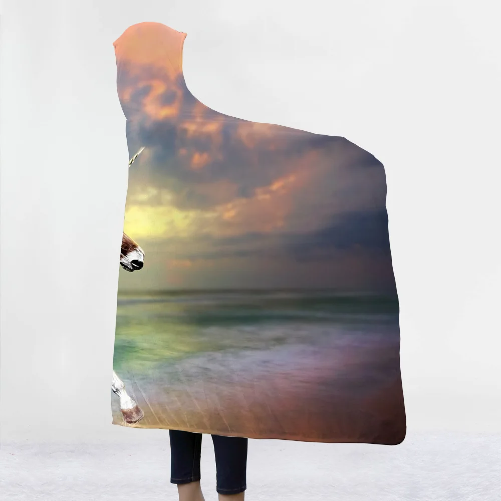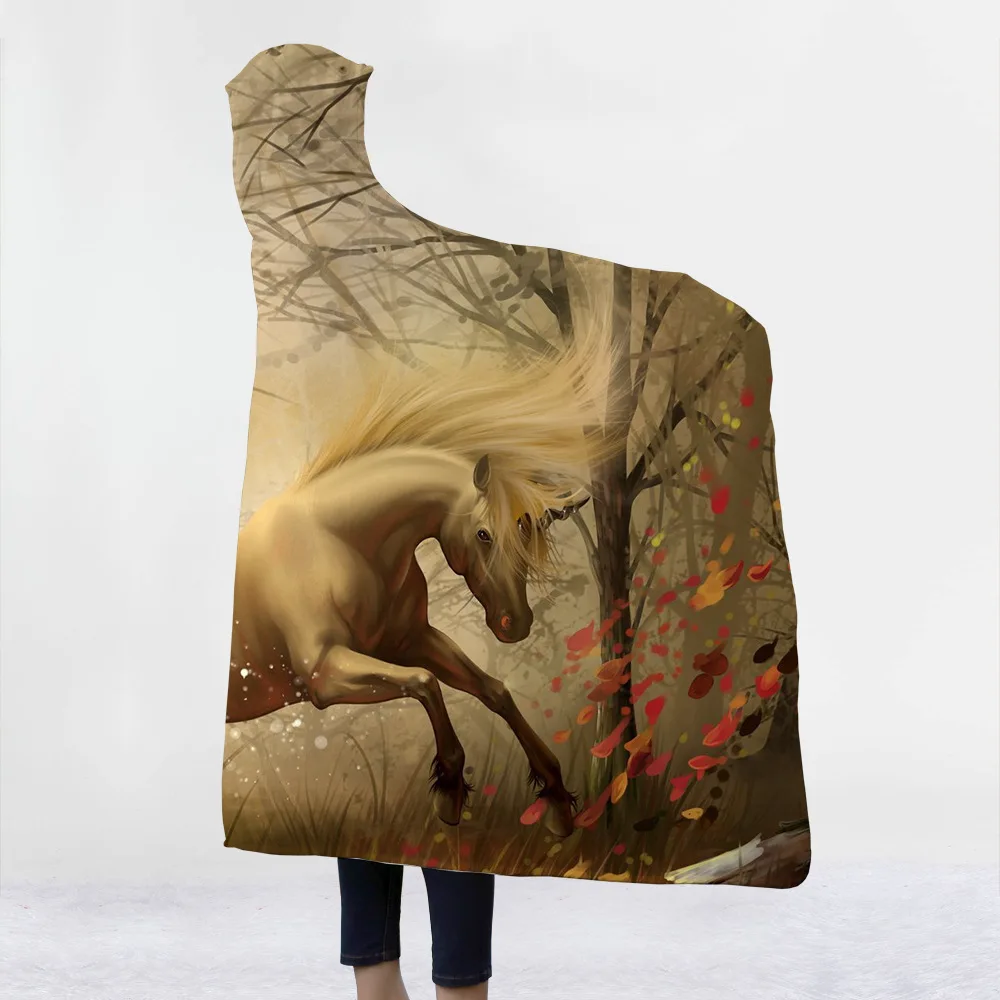 Одеяло с капюшоном Fire Snow Wolf, толстые теплые одеяла с капюшоно...