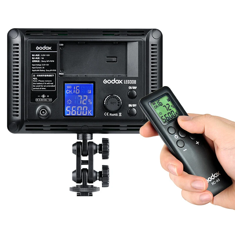 Двухцветный LED светильник ильник Godox 308C с регулируемой яркостью, 5500K, с пультом дистанционного управления