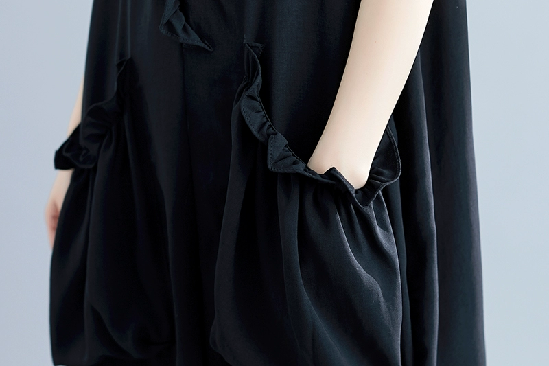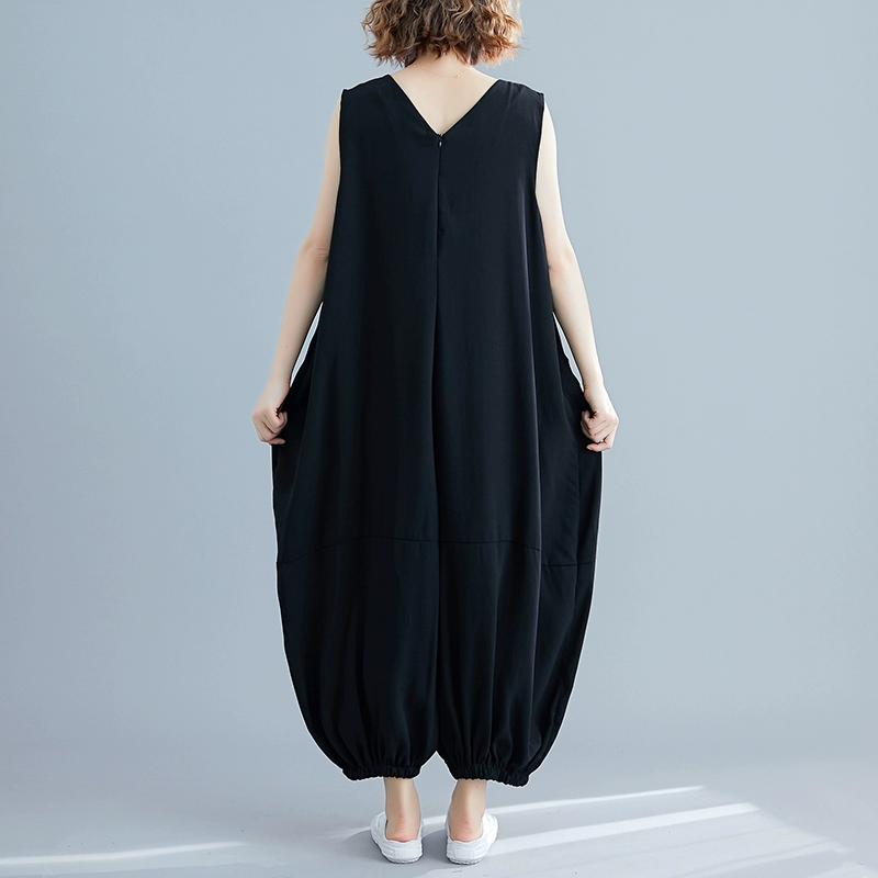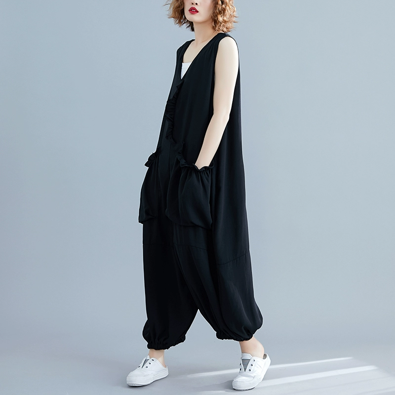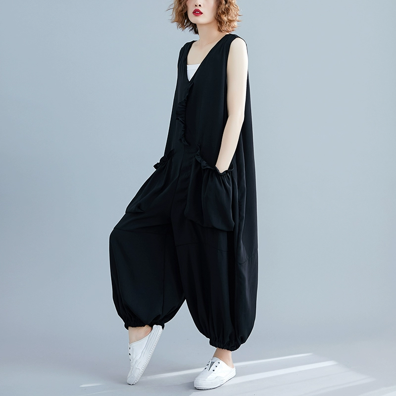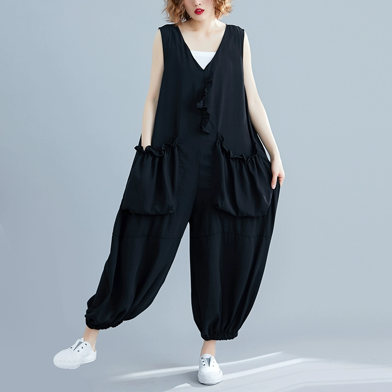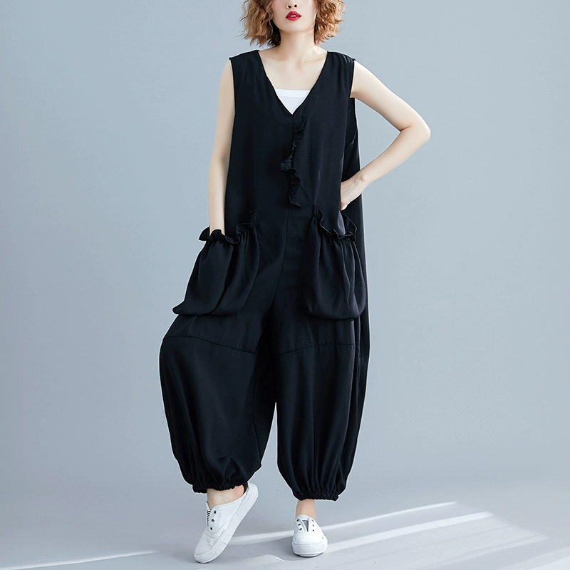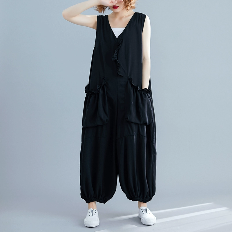 Женский комбинезон без рукавов DIMANAF, Винтажный Длинный комбинезон черного цвета с оборками, просторная Одежда большого размера для лета, 2021