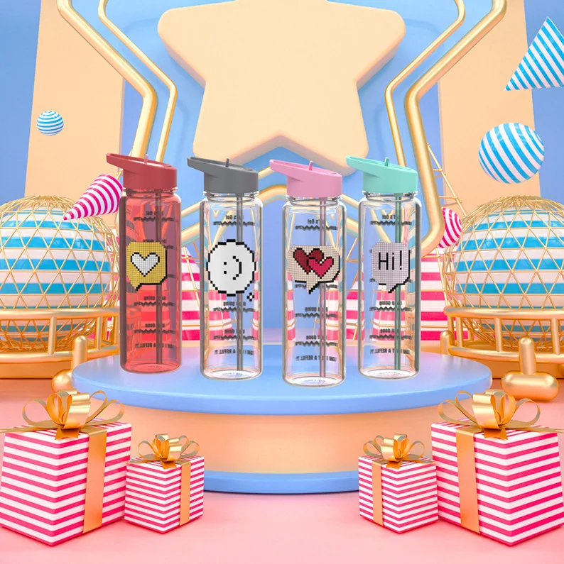 Eco-Friendly750ml Tritan пластиковая Спортивная бутылка для воды на открытом воздухе с объемной шкалой печать мой напиток сок ручка соломенный чайник