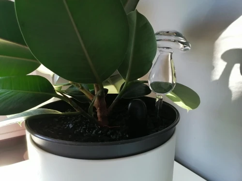 Довольно большой, поэтому прослужит некоторое время без необходимости пополнения, хорошо для людей, которые забудут поливать свои растения lol. Довольно большой и будет тяжелым с большим количеством воды, поэтому лучше работает с растениями большего размера и крепкими растительными горшками! Чтобы избежать его сверкания :)