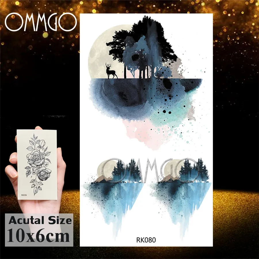 Временные татуировки OMMGO с геометрическими треугольниками, океаном, черная волна, перекатывающаяся волна, поддельные татуировки, индивидуальные татуировки, боди-арт, для женщин и мужчин