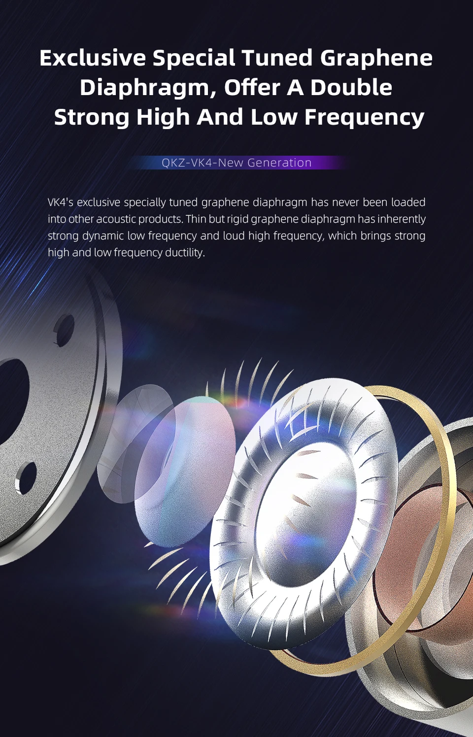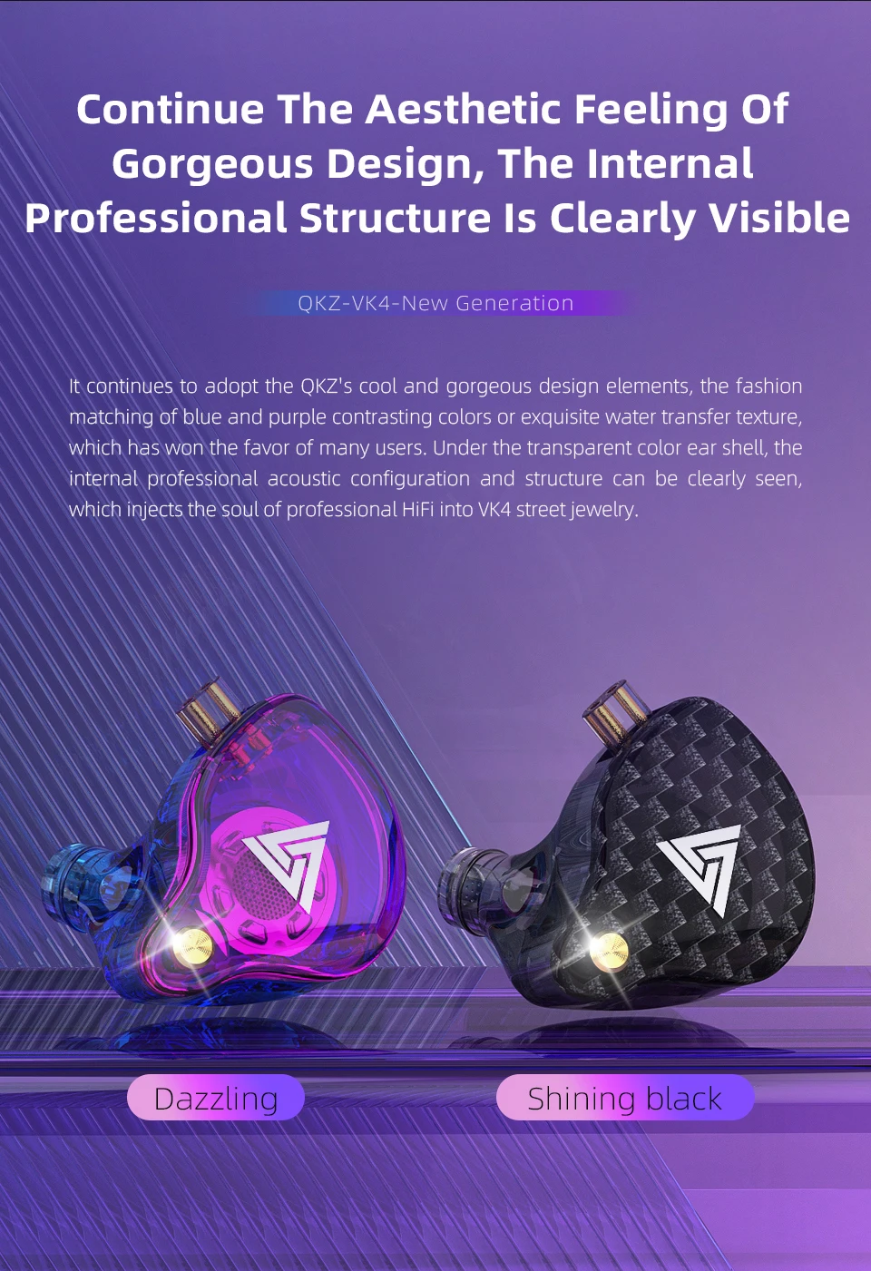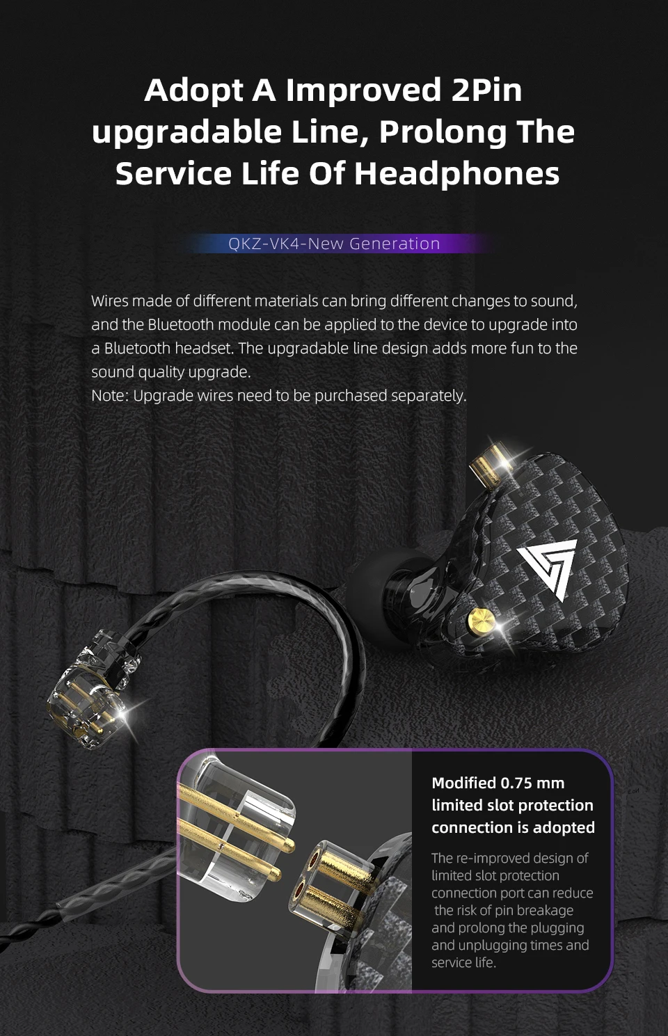 Наушники-вкладыши QKZ VK4 ZST Pro со съемным кабелем и шумоизоляцией