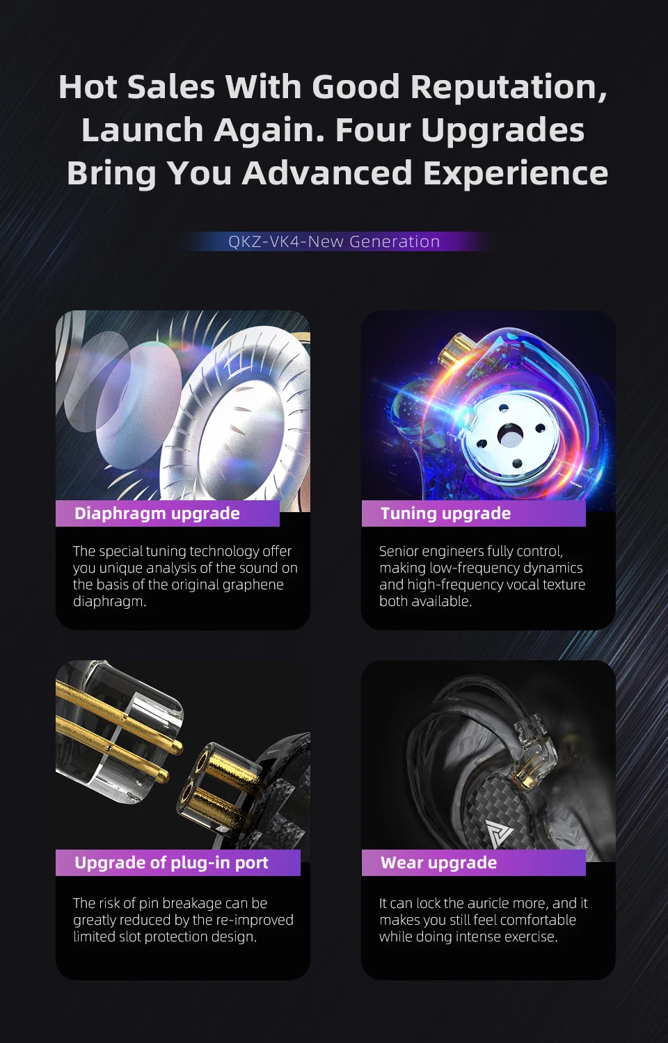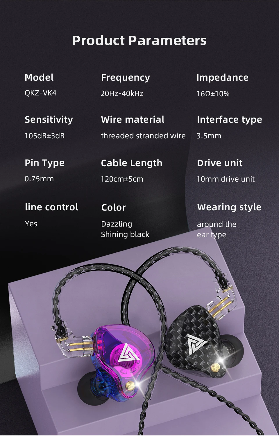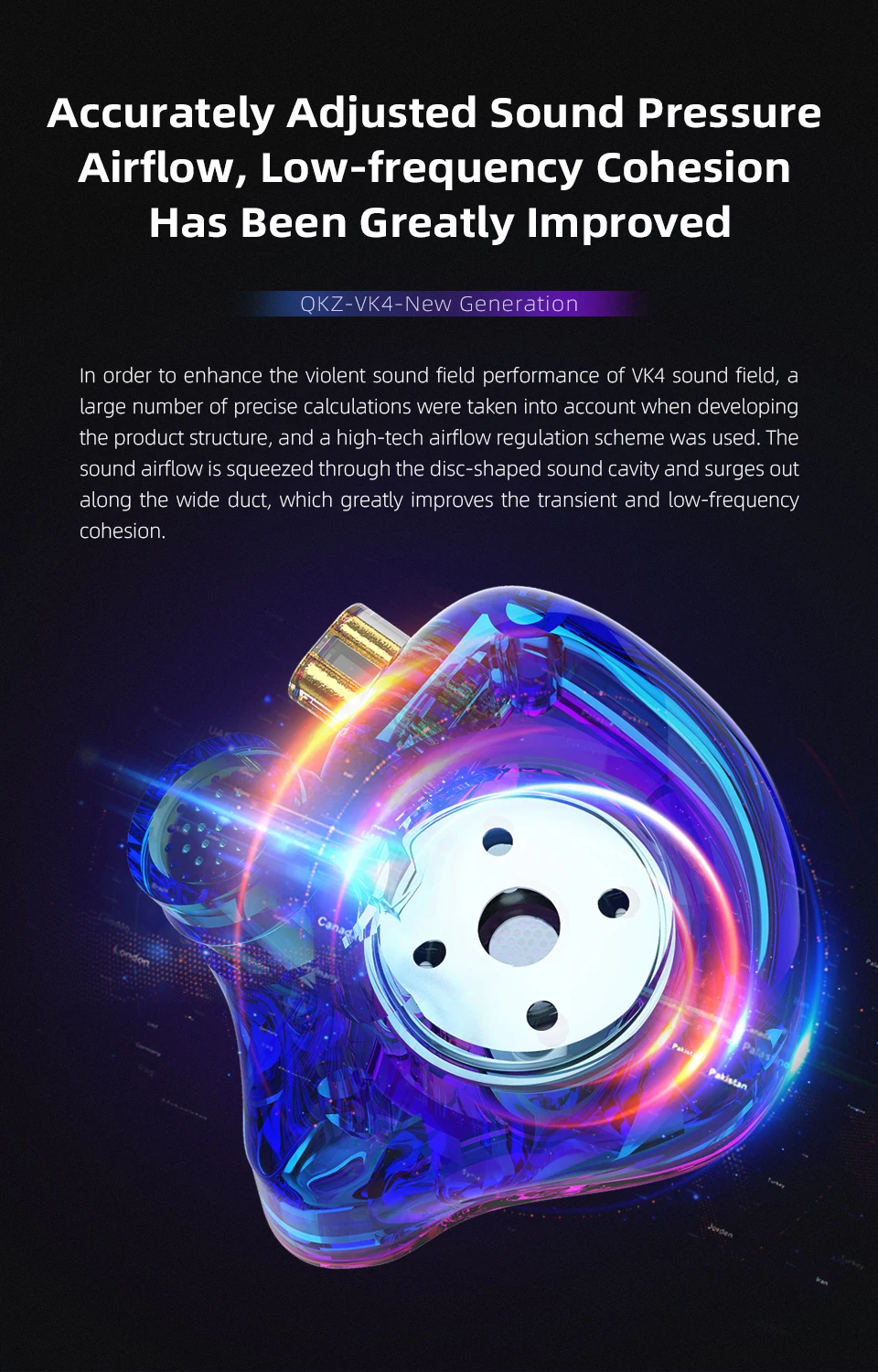 Наушники-вкладыши QKZ VK4 ZST Pro со съемным кабелем и шумоизоляцией