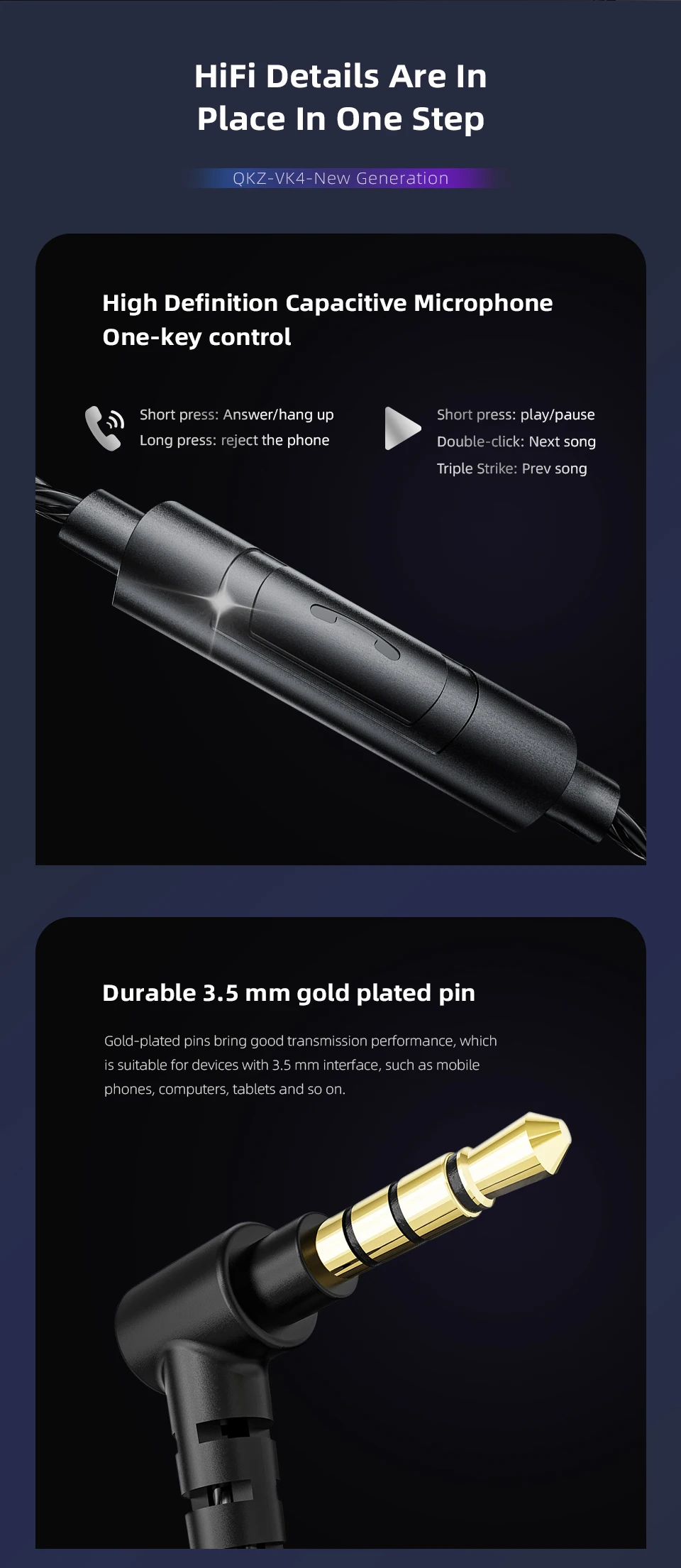 Лучшие наушники до 50$, которые у меня были. Определенно стоят своих денег на 100%. Советую докупить к ним кабель у этого же продавца, с ним звучит чуть лучше, чем с комплектным. (QKZ 0.75mm 8 Core Upgraded Silver Plated Cable 3.5 Earphone Upgrade Cable for VK1 VK2 VK4 VK5)