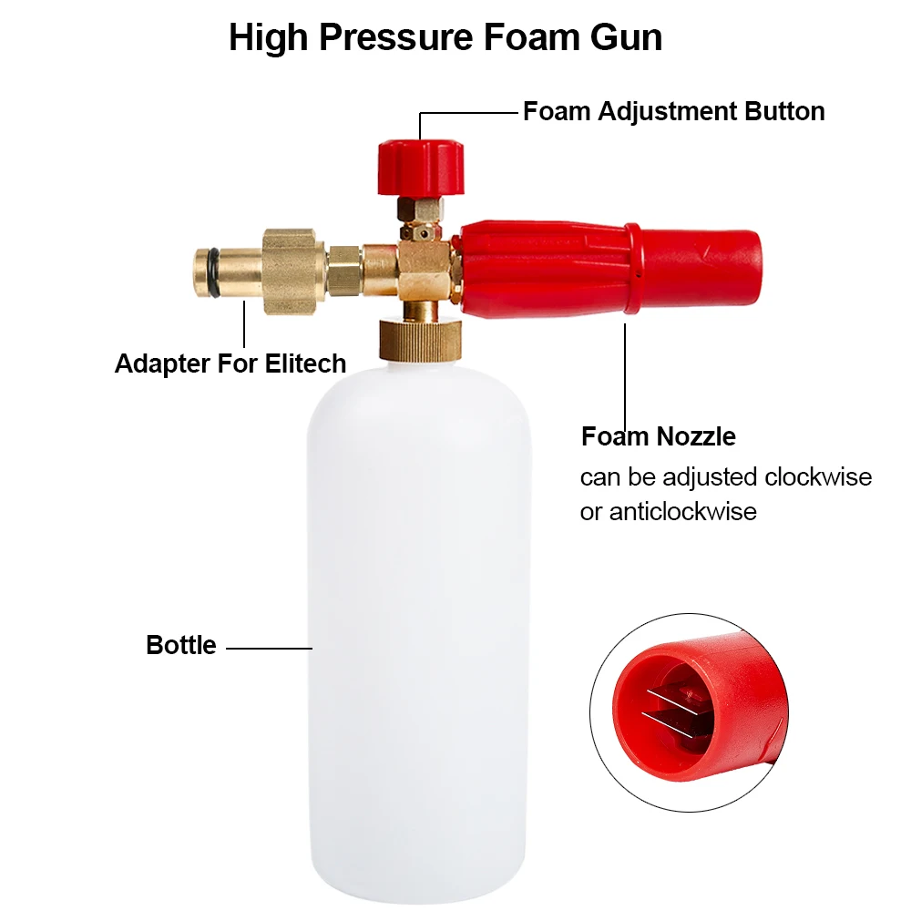 Пенный генератор высокого давления для мойки снега Elitech, Техасский пистолет для мойки автомобилей с регулируемая насадка